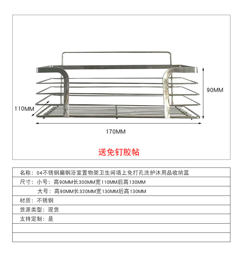 벽걸이형 화장실 무자국 부착 주방 수납 선반 304 스테인리스 평철 욕실 선반 벽걸이형스토어 가기