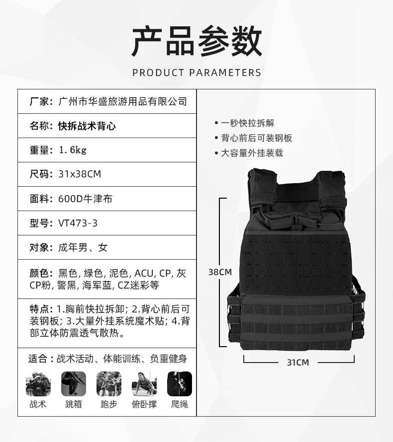 Huasheng Viking 전술 조끼 퀵 릴리스 전투복 옥스포드 천 다기능 야외 남성용 무게 조끼 국경 간 사용자 정의스토어 가기