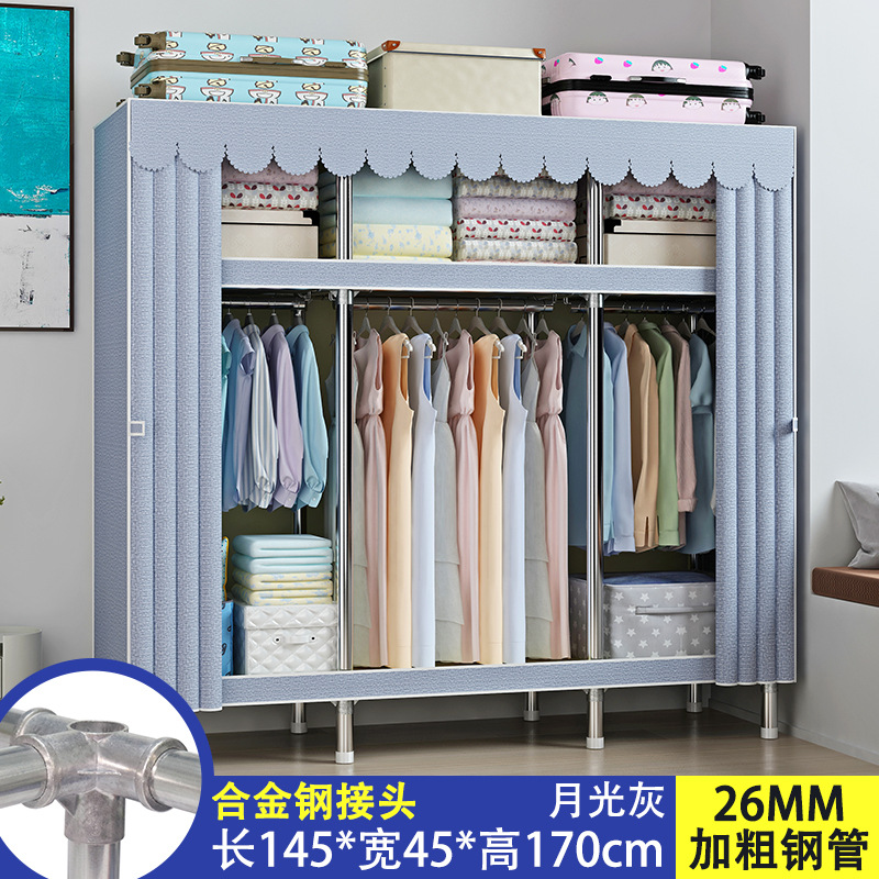 두꺼운 강화 합금 인터페이스 천 옷장이있는 간단한 수직 옷장 간단한 조립 보관 옷장 (2)