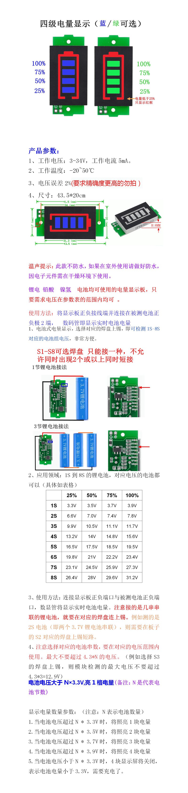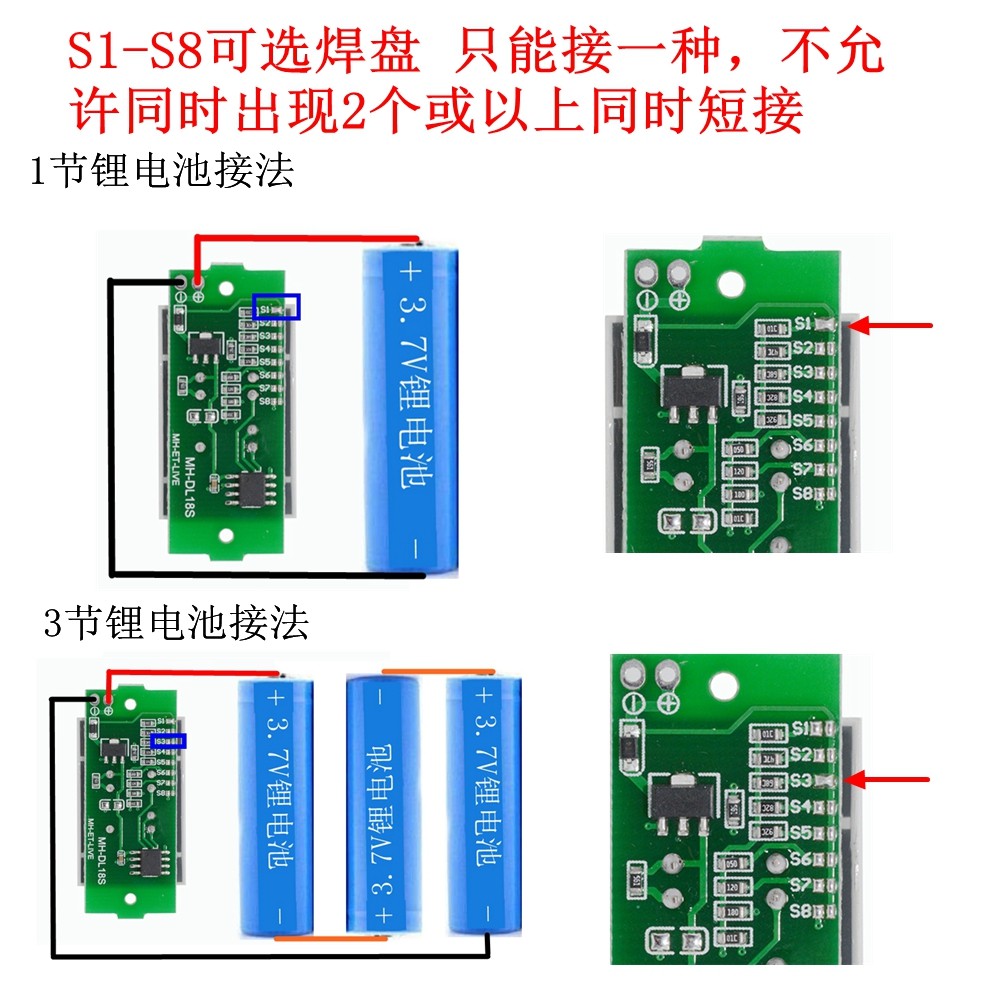 1/2/3/4/6/7/8S 리튬 배터리 게이지 디스플레이 모듈 3 현 LED 리튬 배터리 표시기 보드스토어 가기