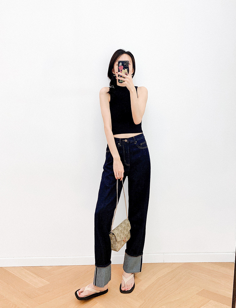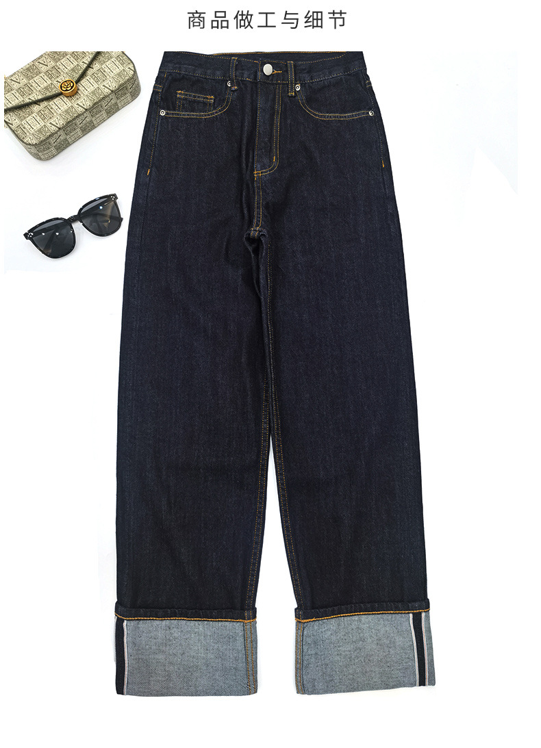 일본 오카야마 레드 엣지 데님 청바지 레드 엣지 오리지널 컬러 다크 블루 레그 커프스 스트레이트 여성용 옐로우 플라워 슬림 클래식 레트로스토어 가기