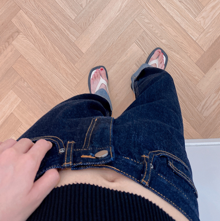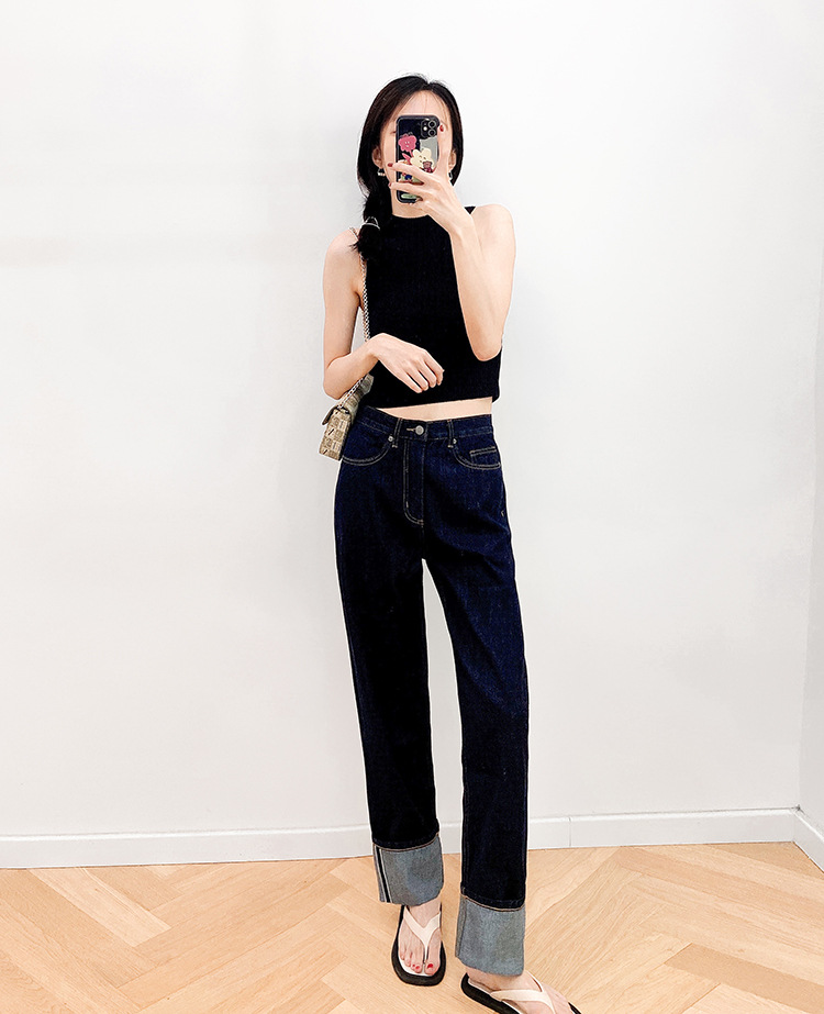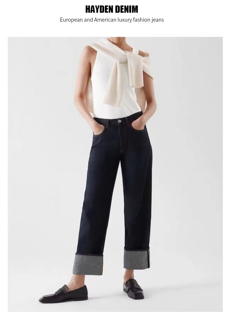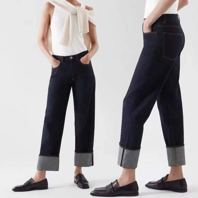 일본 오카야마 레드 엣지 데님 청바지 레드 엣지 오리지널 컬러 다크 블루 레그 커프스 스트레이트 여성용 옐로우 플라워 슬림 클래식 레트로