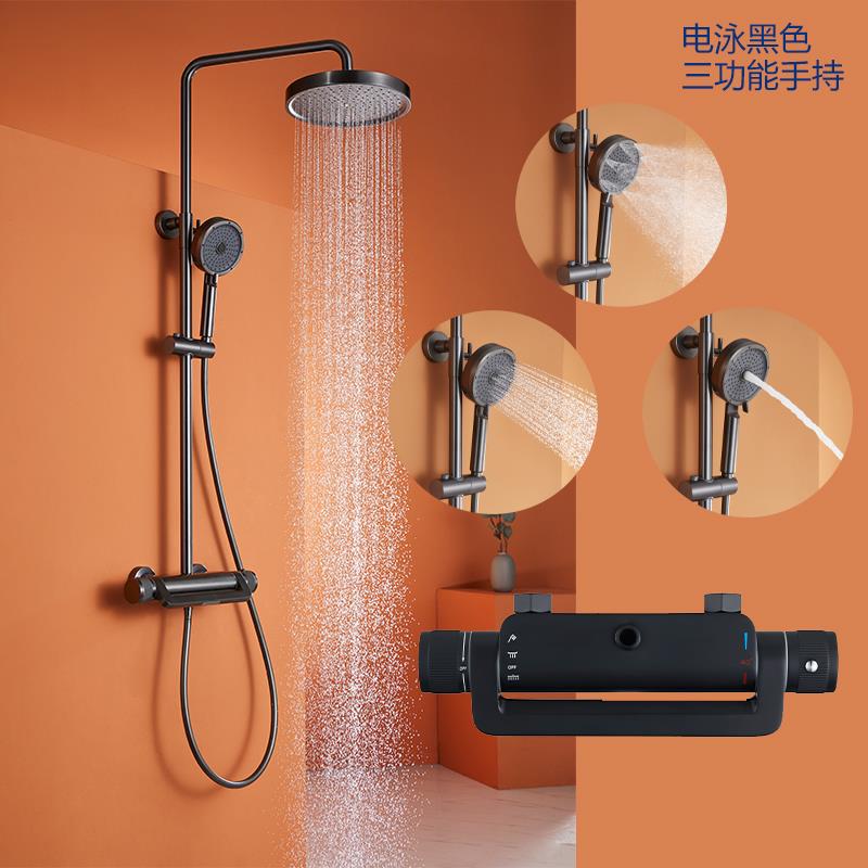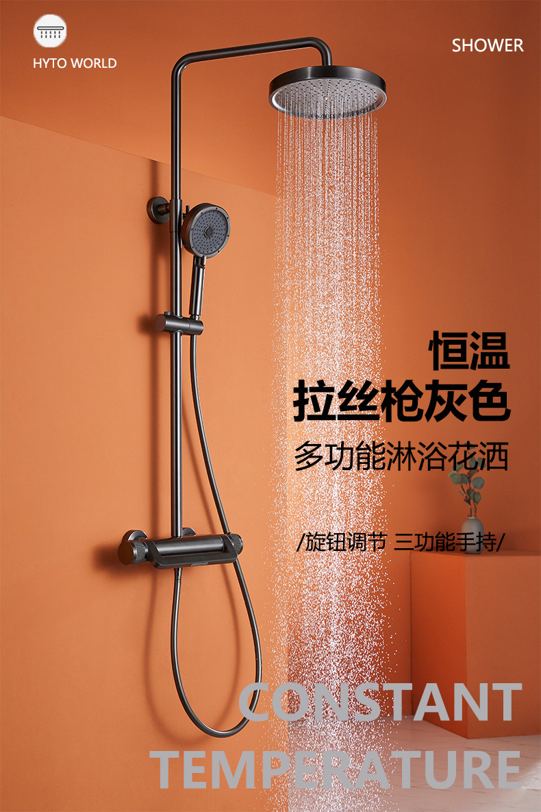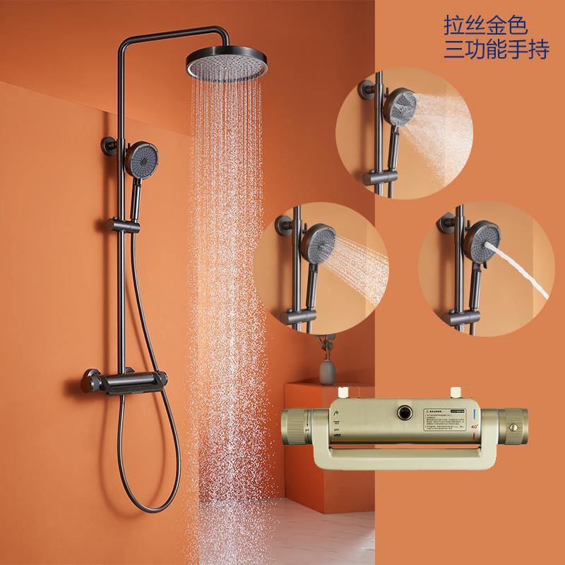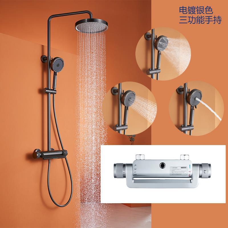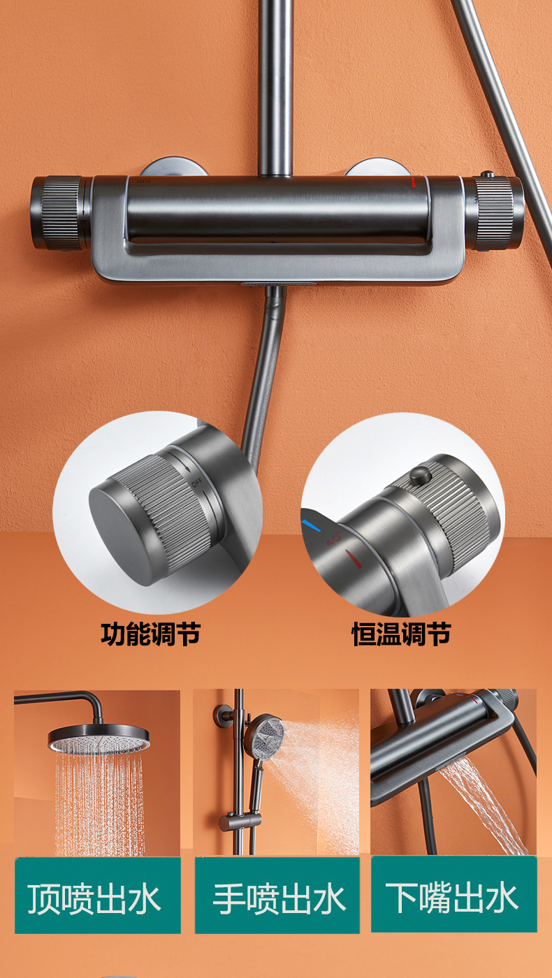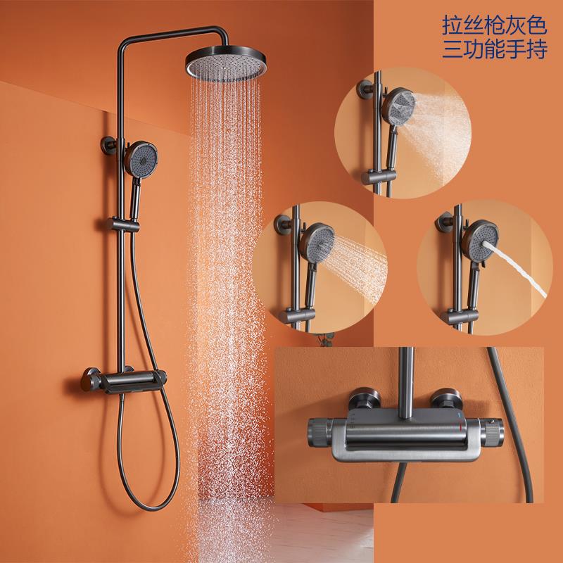 Mu Ku 일정한 온도 샤워 세트 가정용 구리 욕실 비 욕실 물 혼합 밸브 건 회색 목욕 수도꼭지