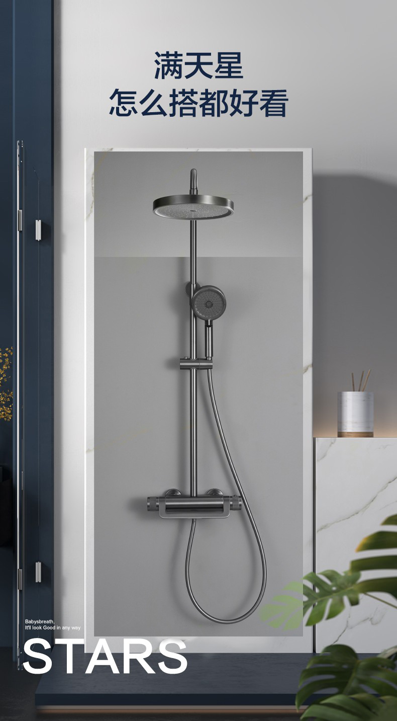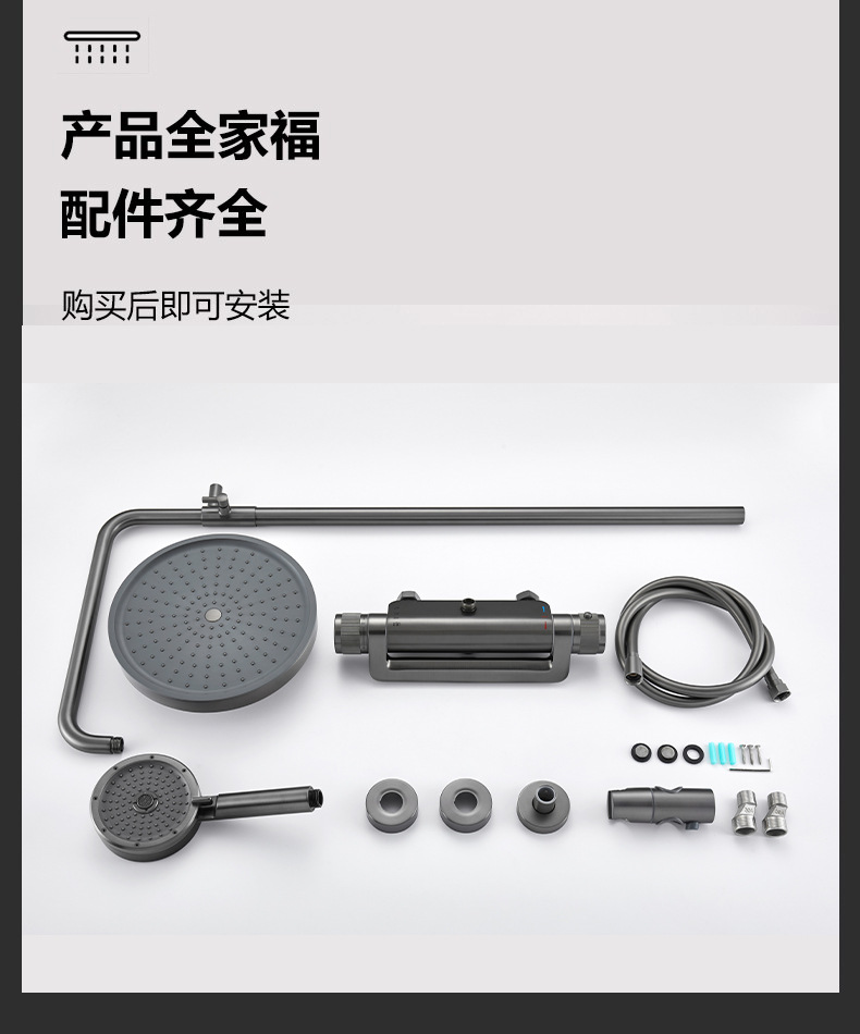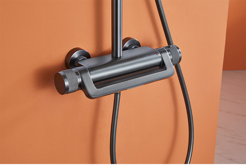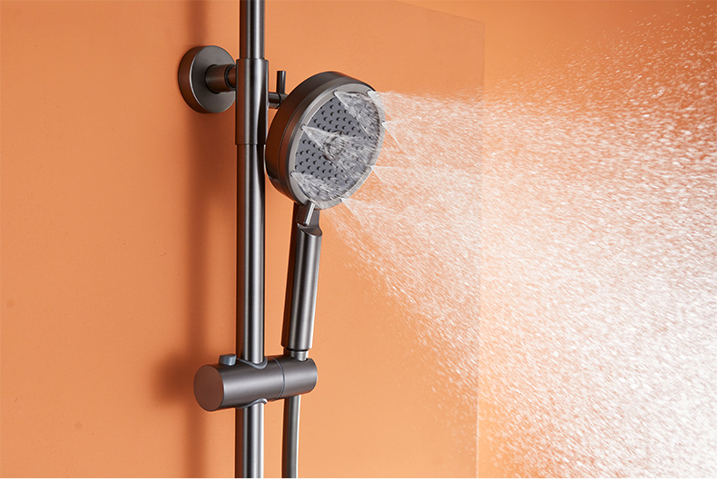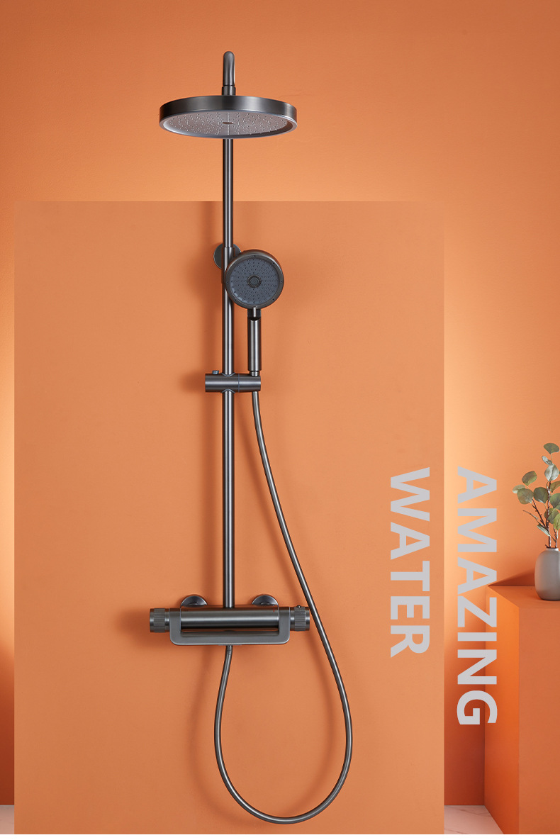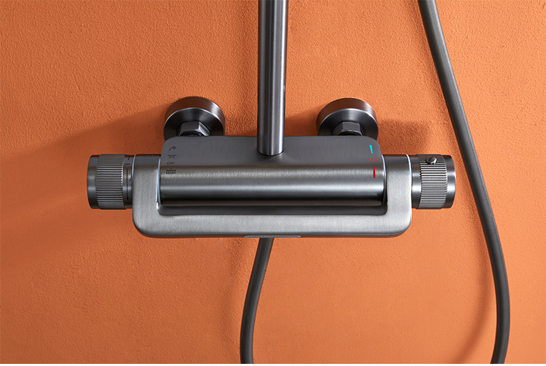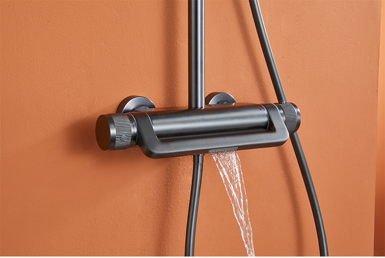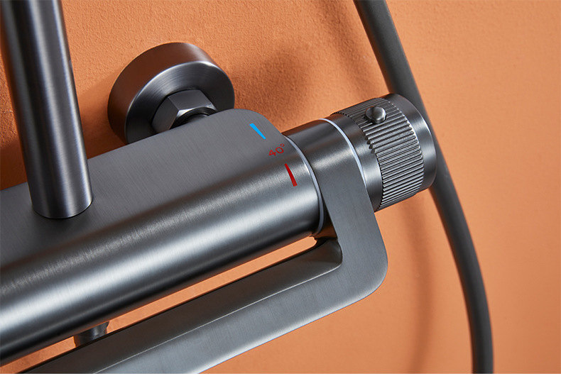 Mu Ku 일정한 온도 샤워 세트 가정용 구리 욕실 비 욕실 물 혼합 밸브 건 회색 목욕 수도꼭지