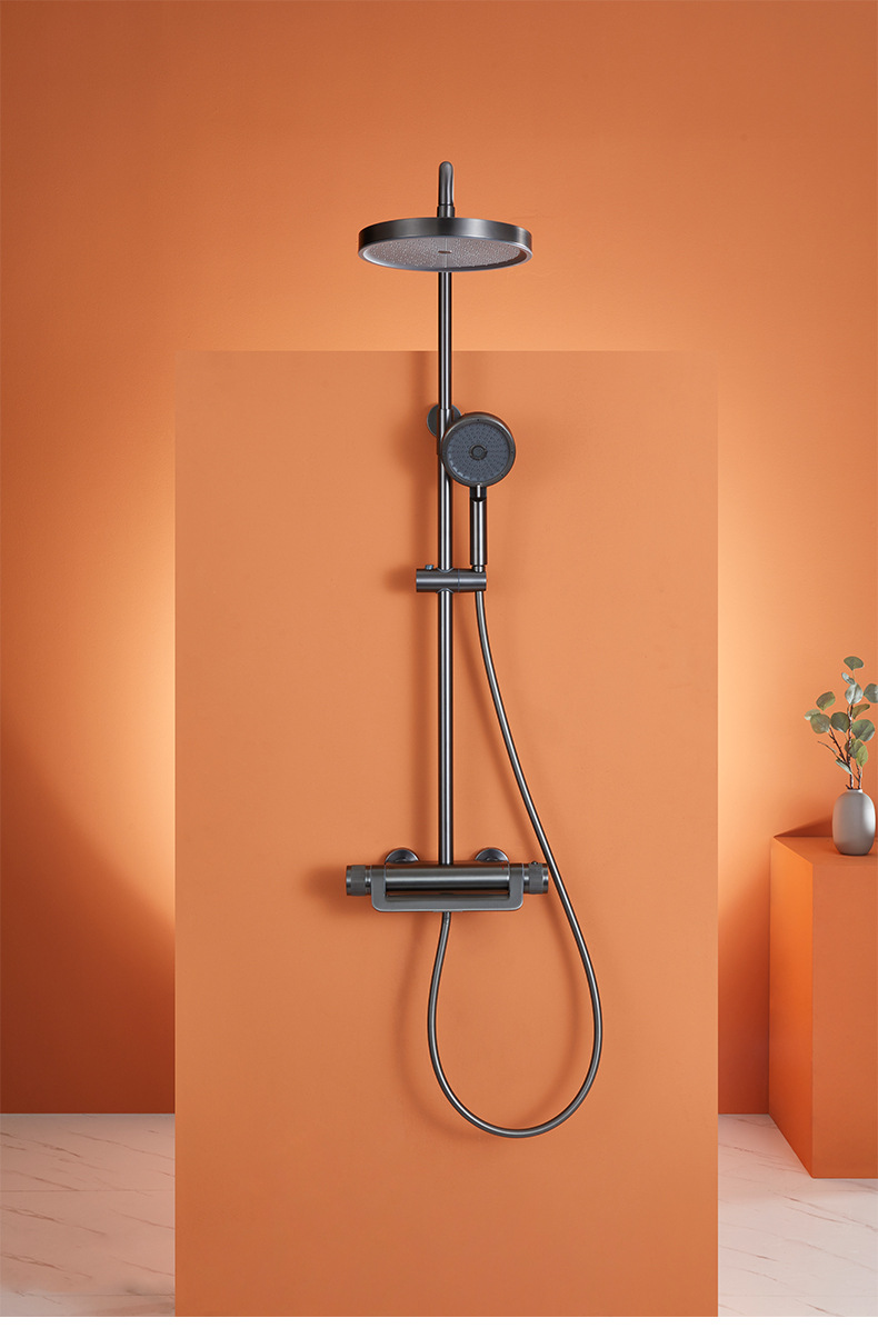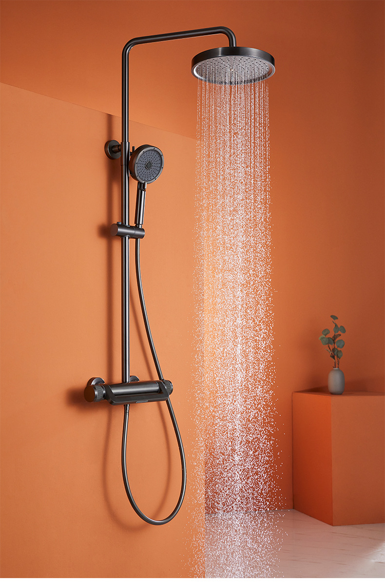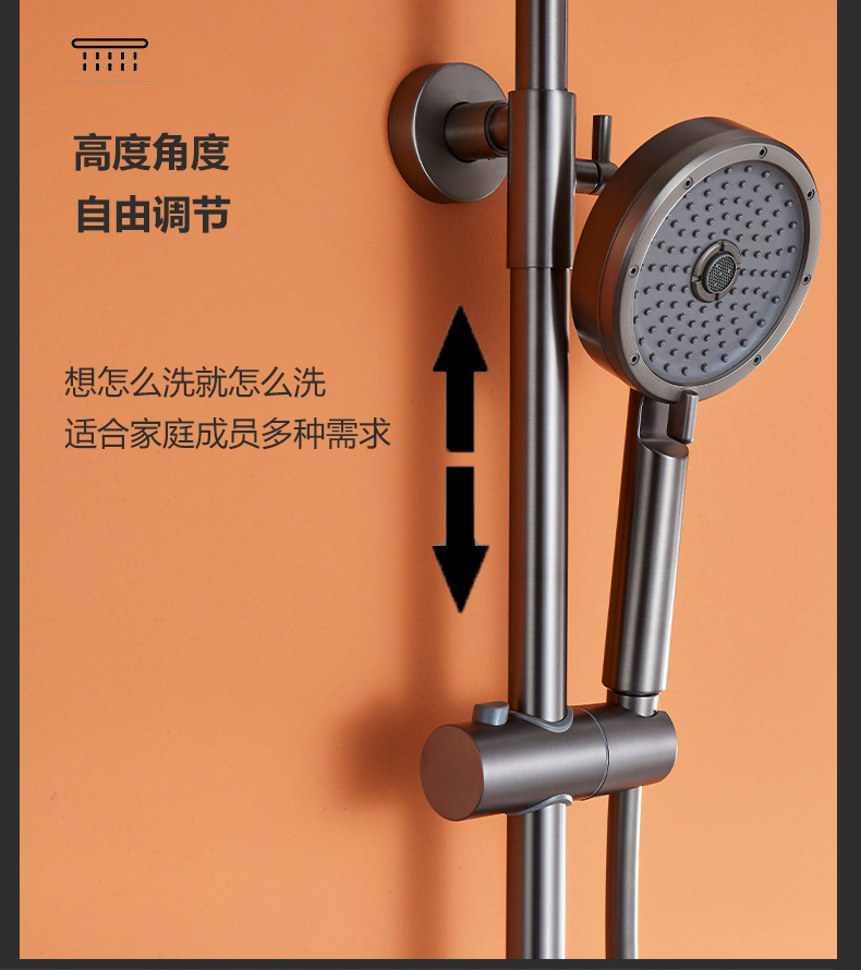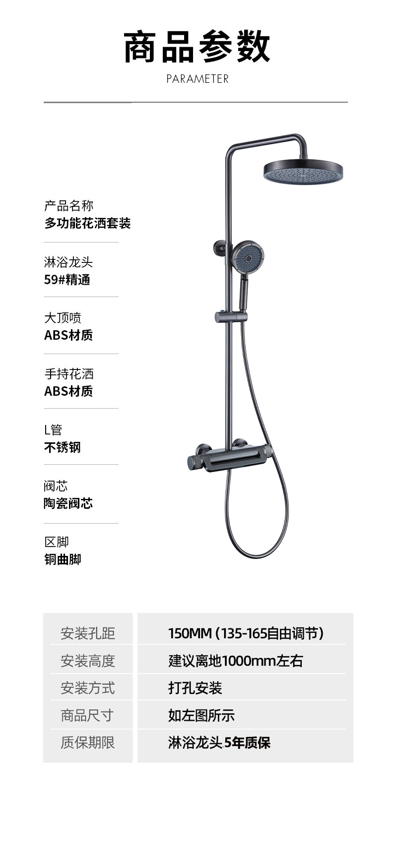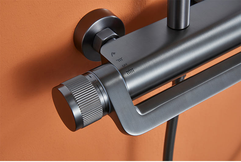 Mu Ku 일정한 온도 샤워 세트 가정용 구리 욕실 비 욕실 물 혼합 밸브 건 회색 목욕 수도꼭지