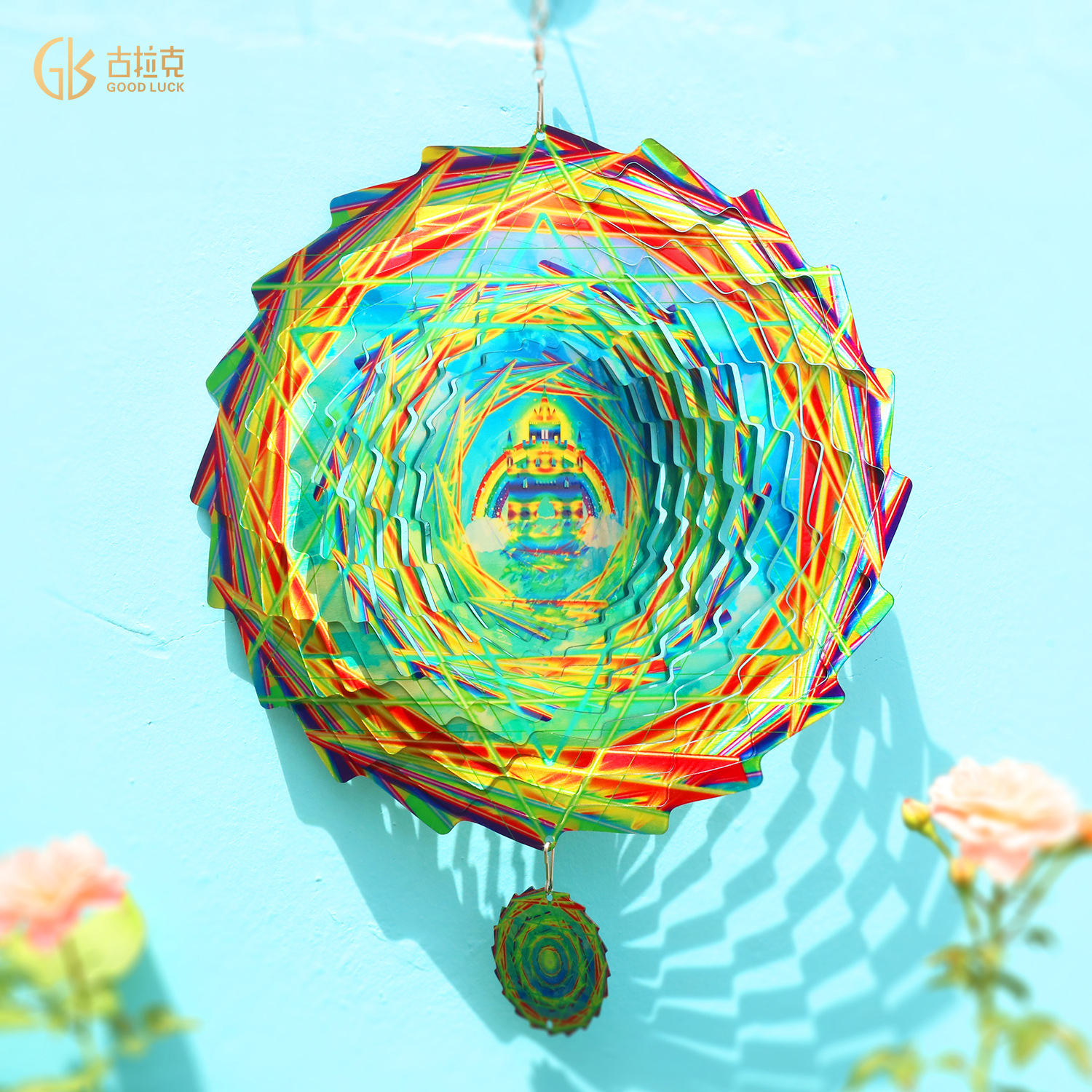 아마존 독립국 공장 직접 3D 회전 바람 회전 안뜰 정원 금속 다채로운 바람 차임 장식품