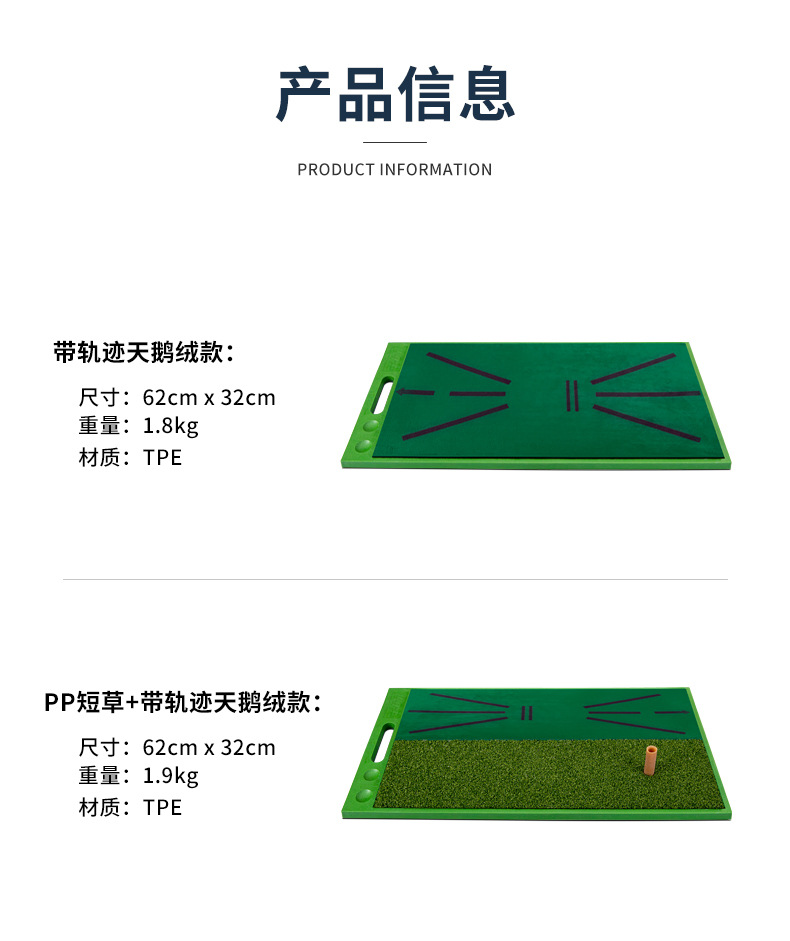 名 称 | 可显轨迹高尔夫打击垫 | 材 质 | TPE环保底+优质天鹅绒 | |