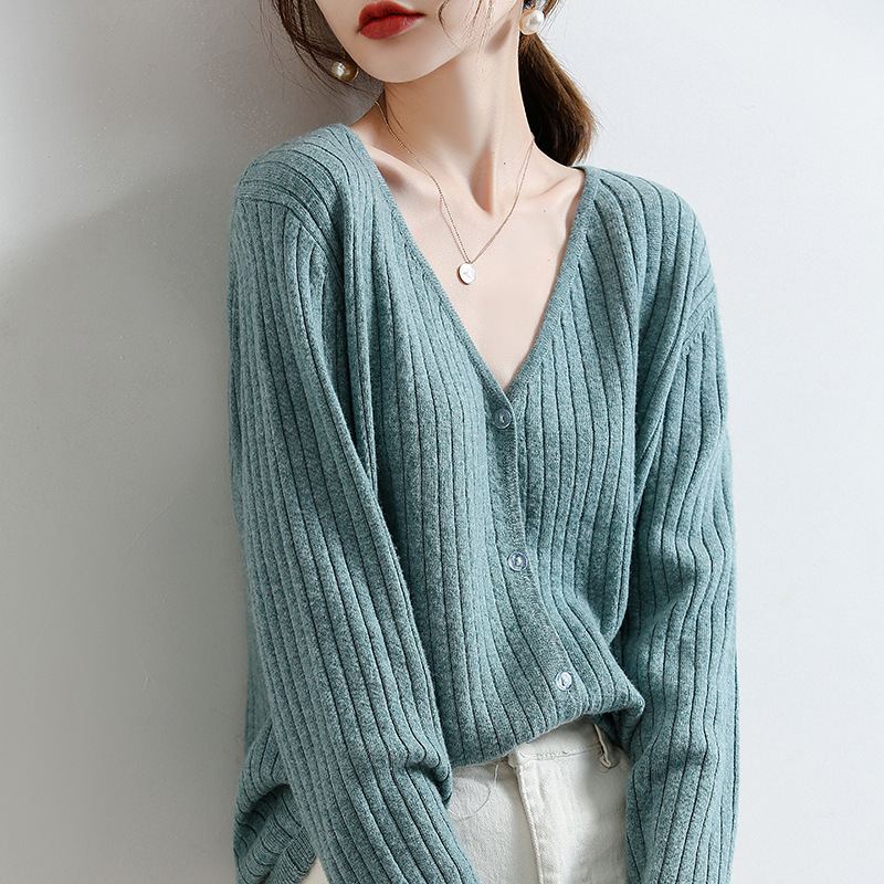 2022 가을 겨울 새로운 한국 여성 가디건 재킷 탑 소프트 왁스 피부 친화적 인 V-넥 중공 여성용 스웨터