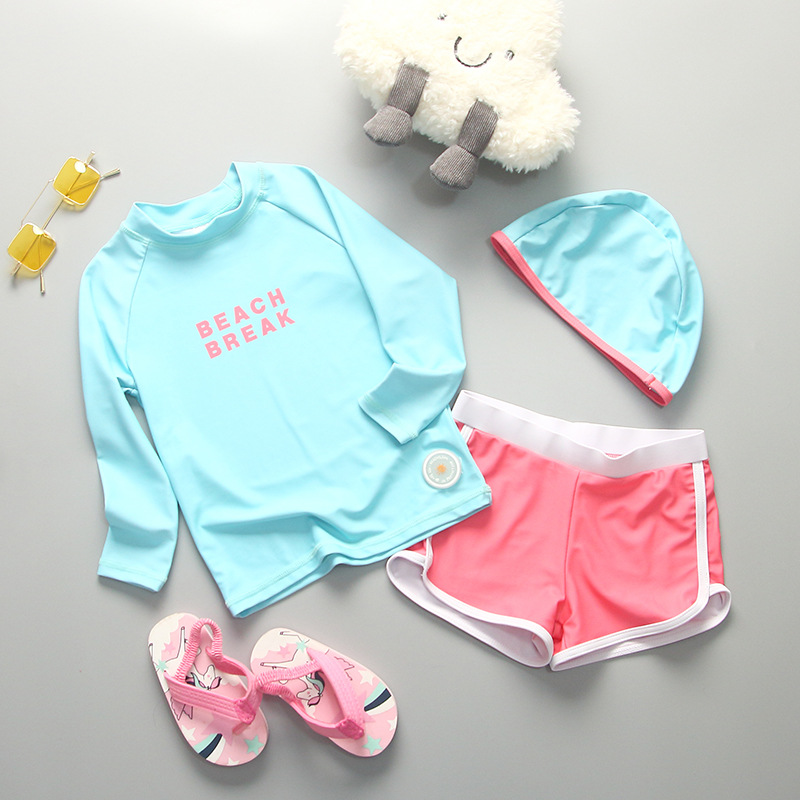 韩国儿童泳衣运动女童女孩宝宝分体长袖防晒小中大童沙滩冲浪服潮