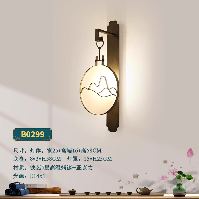 새로운 중국 스타일 소파 벽 램프 현대 미니멀리스트 방 침실 침대 옆 거실 입구 통로 계단 배경 벽 램프