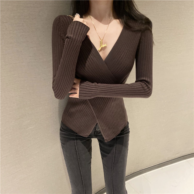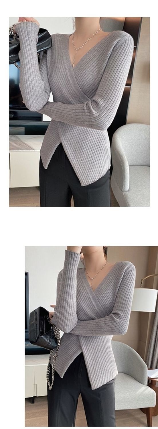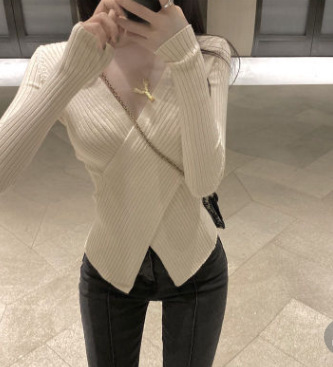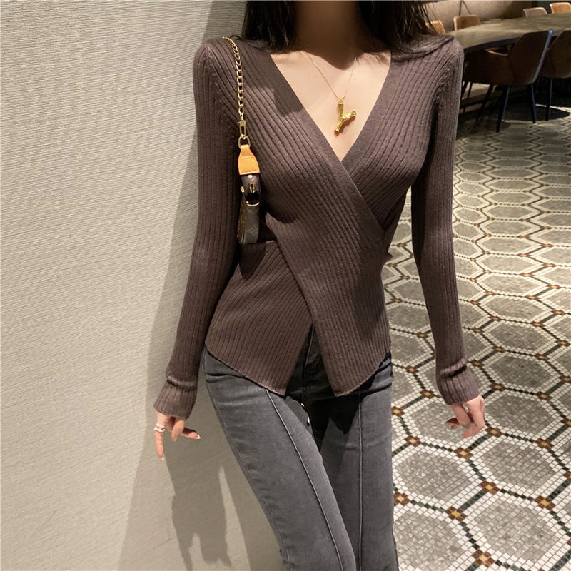 2025년 봄/가을 신상 니트 이너웨어 탑 유럽풍 패셔너블한 브이넥 불규칙 여성 스웨터스토어 가기