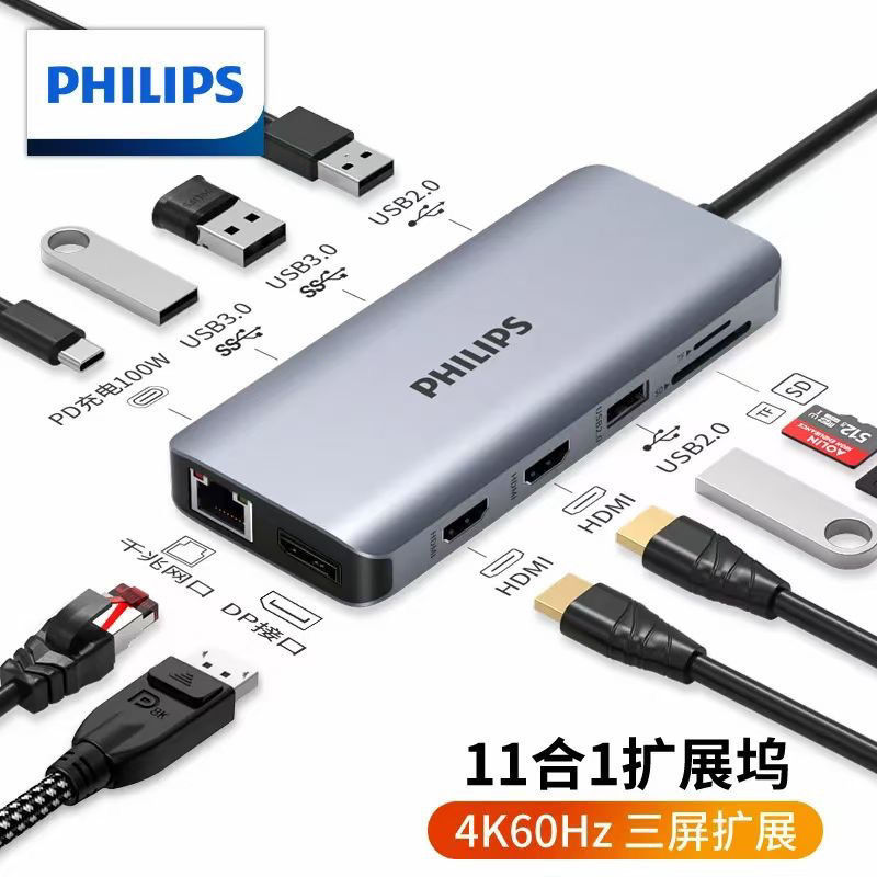 필립스 typec 확장 도크 확장 포트 USB 어댑터 HDMI 라이트닝 4 인터페이스 맥 노트북 컴퓨터