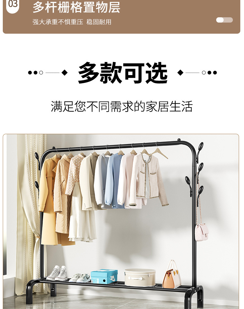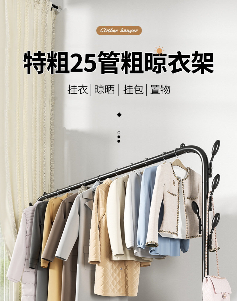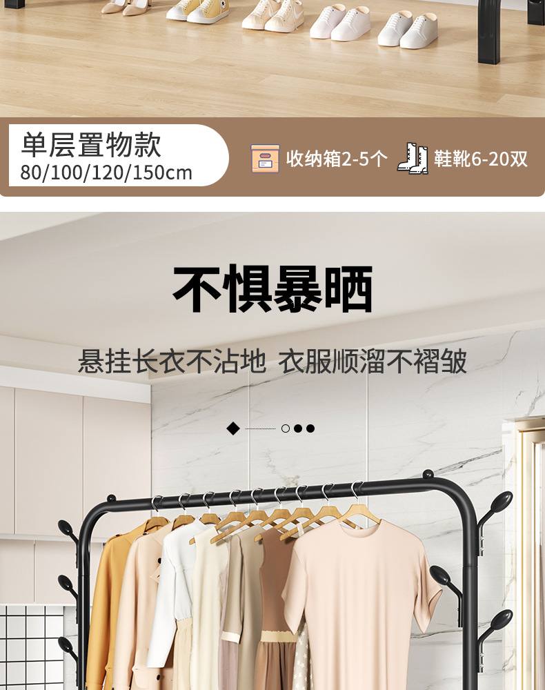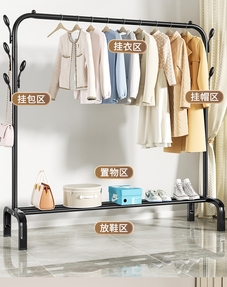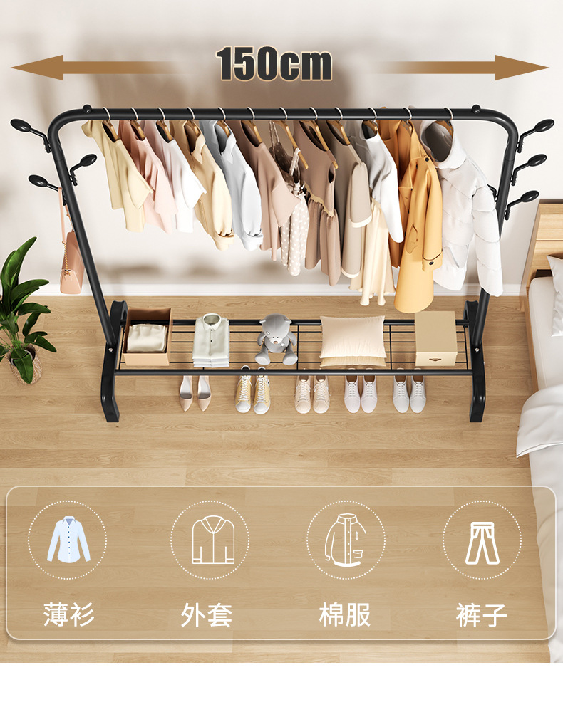 두꺼운 코트 랙 건조 랙 바닥 실내 옷걸이 침실 싱글 막대 의류 랙 가정용 건조 랙 기숙사스토어 가기