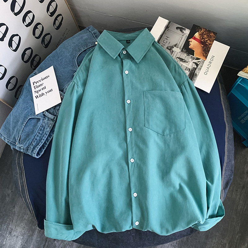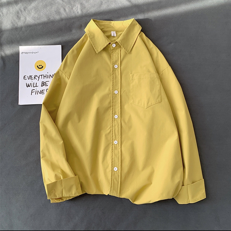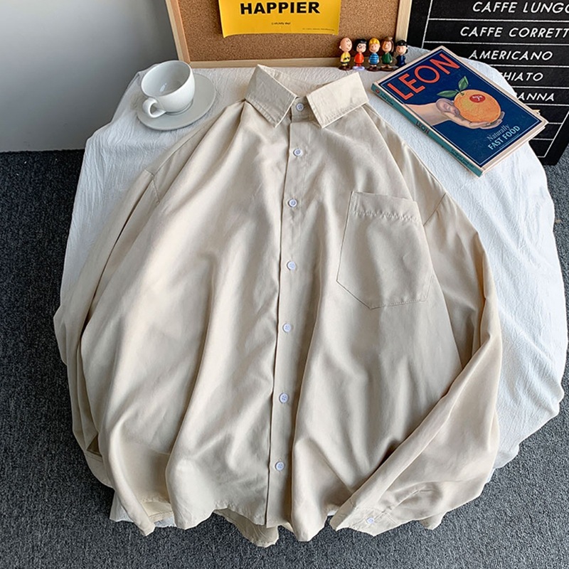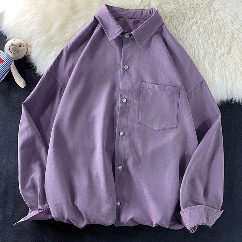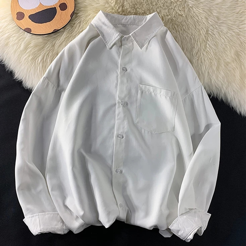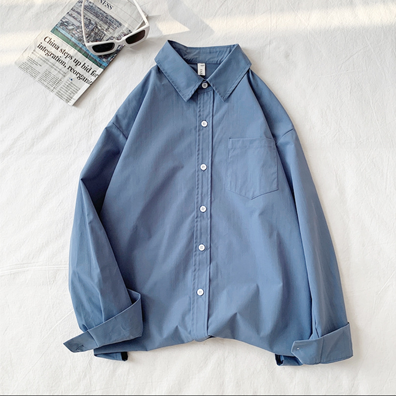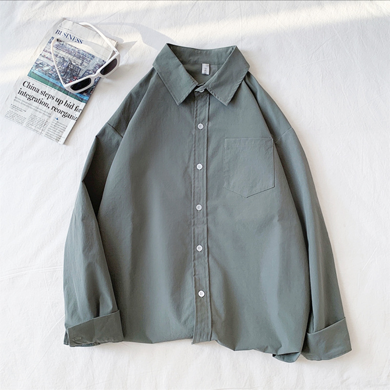 가을 단색 긴팔 셔츠 남녀공용 2025년 신상 한국 스타일 루즈핏 커플 셔츠 홍콩 스타일 상의 자켓