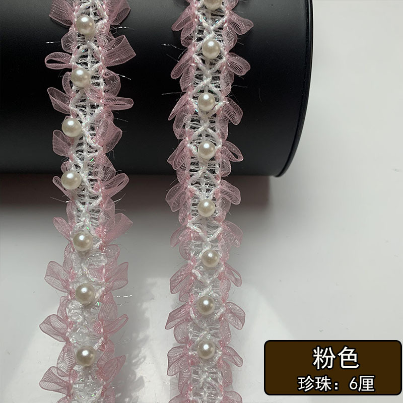 공장 직접 2.5cm 진주 레이스 작은 향기로운 스타일 리본 네일 비드 벨트 DIY 의류 스커트 칼라 캡