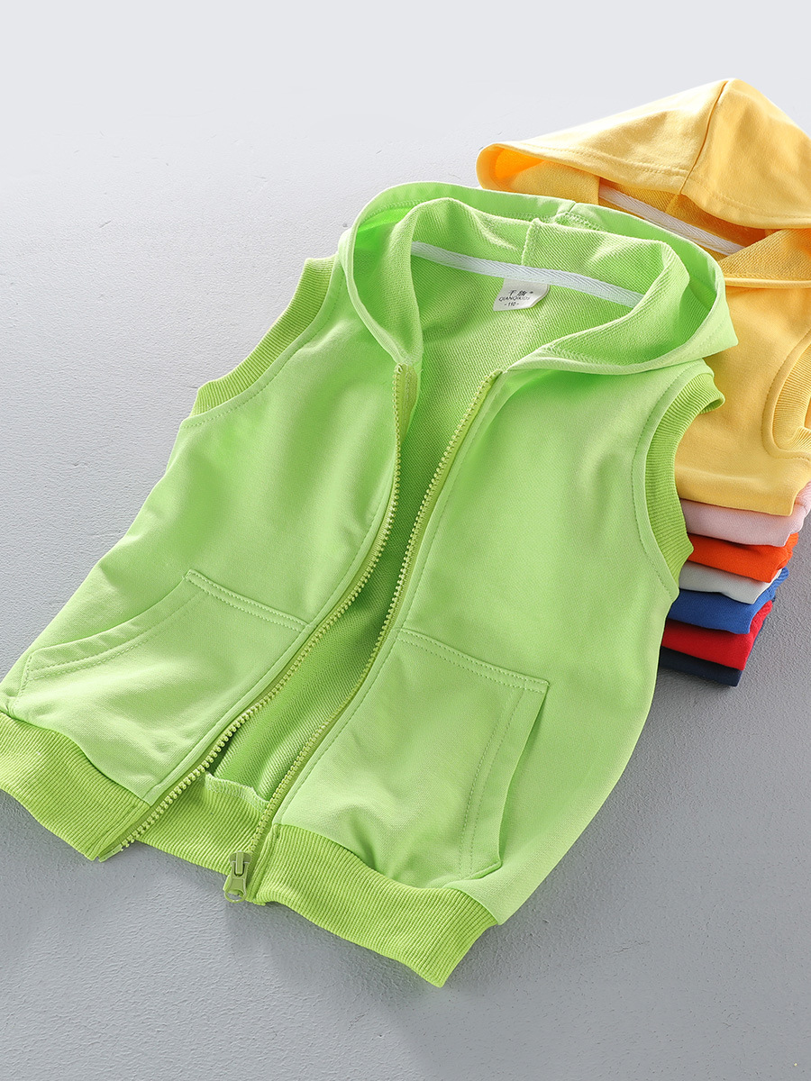 어린이 조끼 남성과 여성의 봄과 가을 여름 얇은 야외 착용 순면 후드 유치원 조끼 활동 인쇄 로고스토어 가기