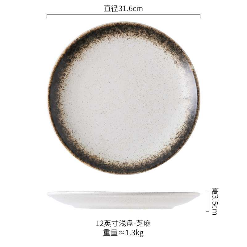일본식 얕은 접시 플랫 플레이트 12 인치 라운드 스테이크 디너 플레이트 가정용 접시 식기 접시 아침 식사 접시 샐러드 접시
