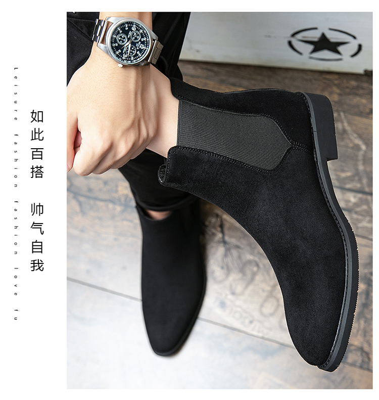 马丁靴男短靴内增高靴子英伦休闲厚底高帮鞋潮百搭磨砂切尔西靴男