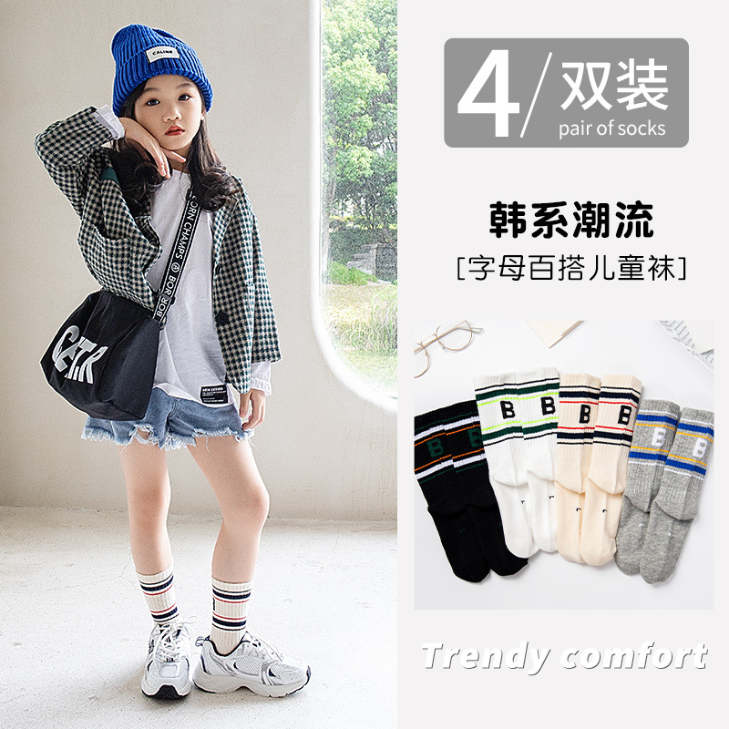 봄과 가을 새 어린이 양말 도매 소년 소녀 간단한 스포츠 튜브 양말 대형 어린이 학생 편지 조수 양말스토어 가기