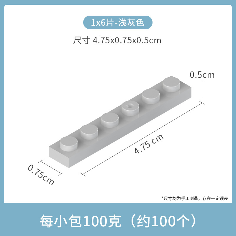 • 작은 입자 1*6 짧은 벽돌 6 구멍 라이트 그레이 100g