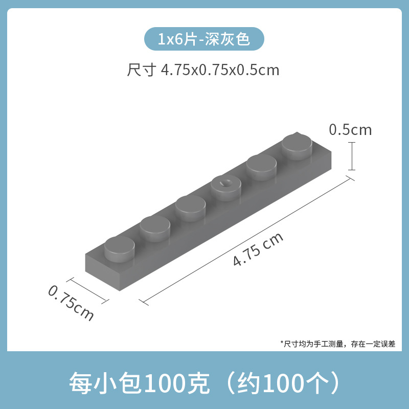 • 작은 입자 1*6 짧은 벽돌 6 구멍 다크 그레이 100g