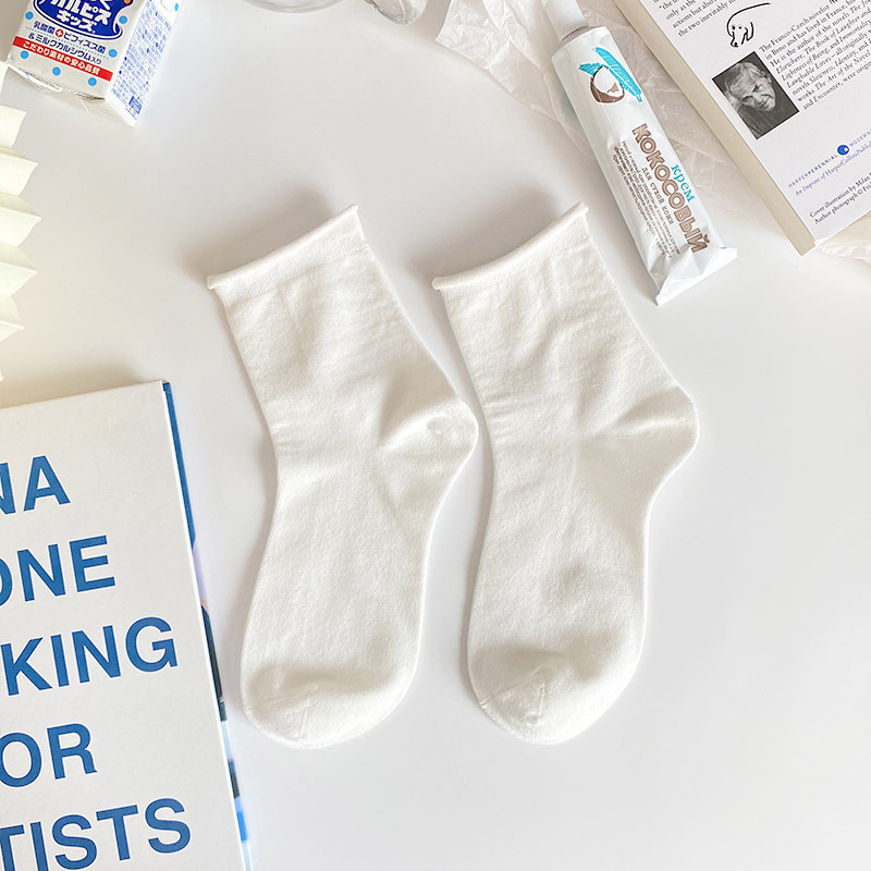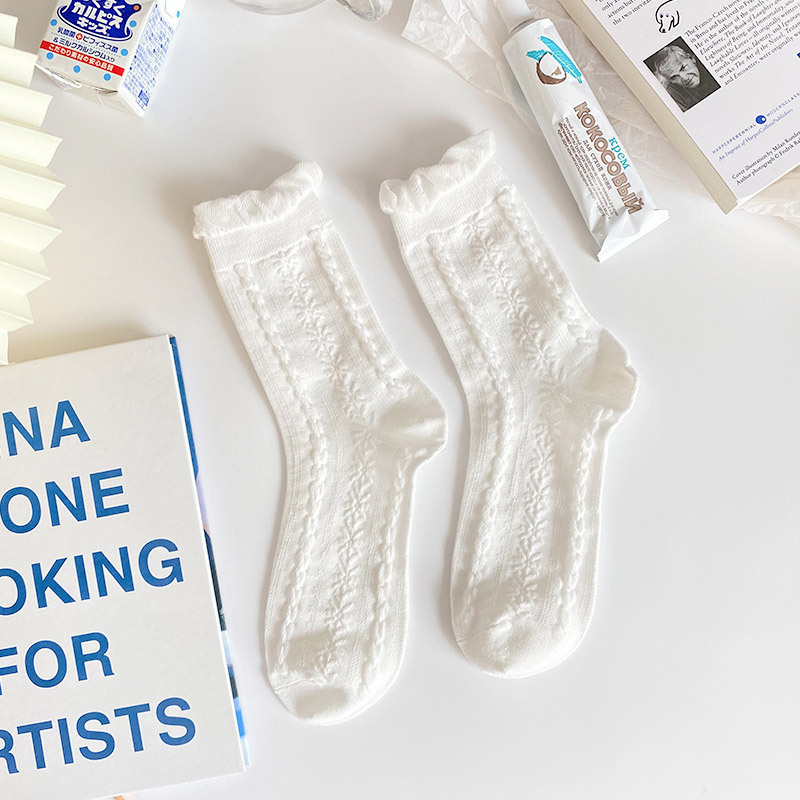 미드 튜브 양말 여성용 귀여운 일본 jk 양말 가을과 겨울 새로운 흰색 양말 봄과 가을 긴 튜브 로리타 레이스 양말