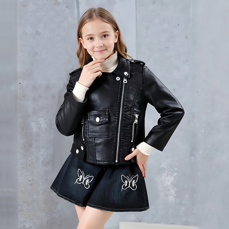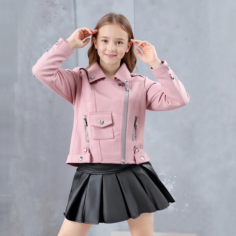 어린이 가죽 자켓 소년과 소녀 가죽 자켓 오토바이 자켓 2023 봄과 가을 새로운 한국 아동 의류 제조업체스토어 가기