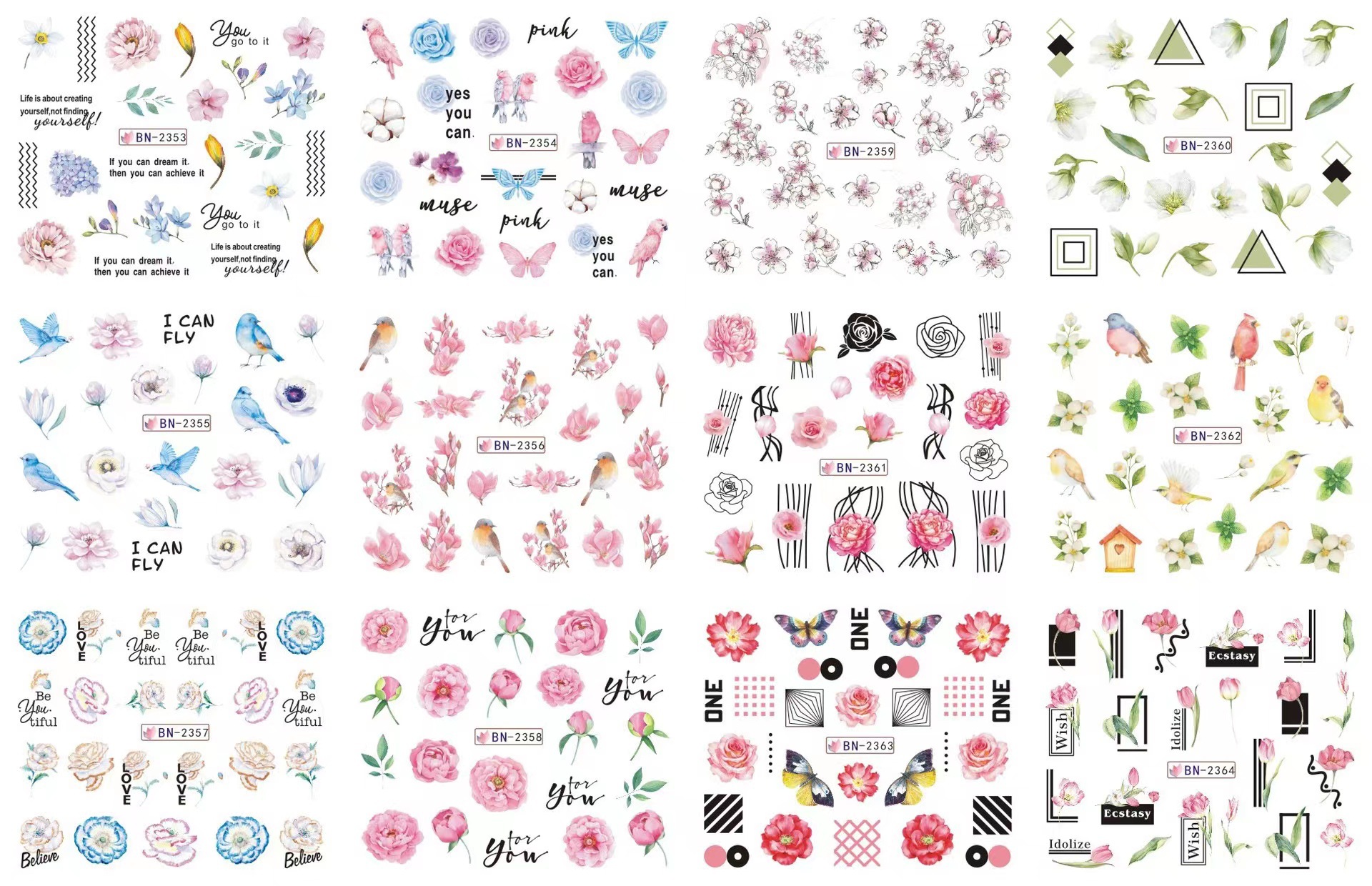 2022 네일 아트 새로운 거품 물 전송 스티커 크리스마스 할로윈 추수 감사절 시리즈 신선한 꽃 BN 12