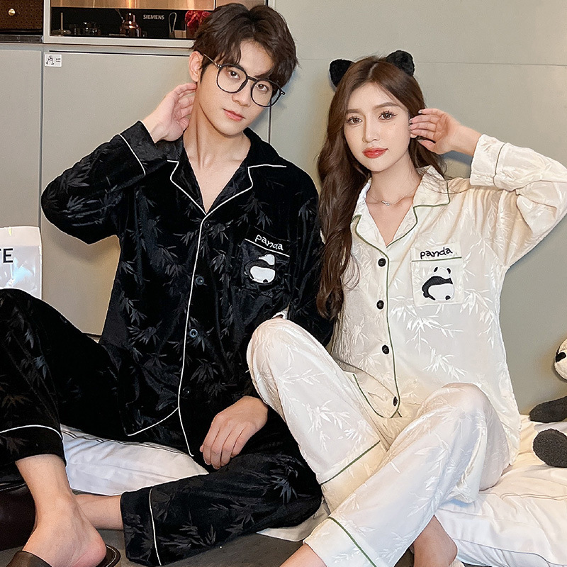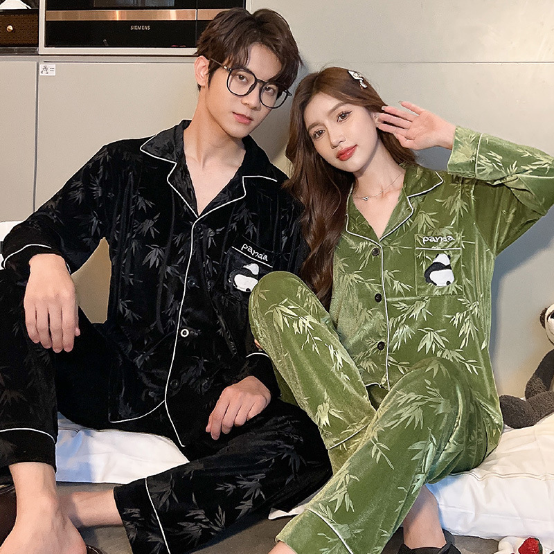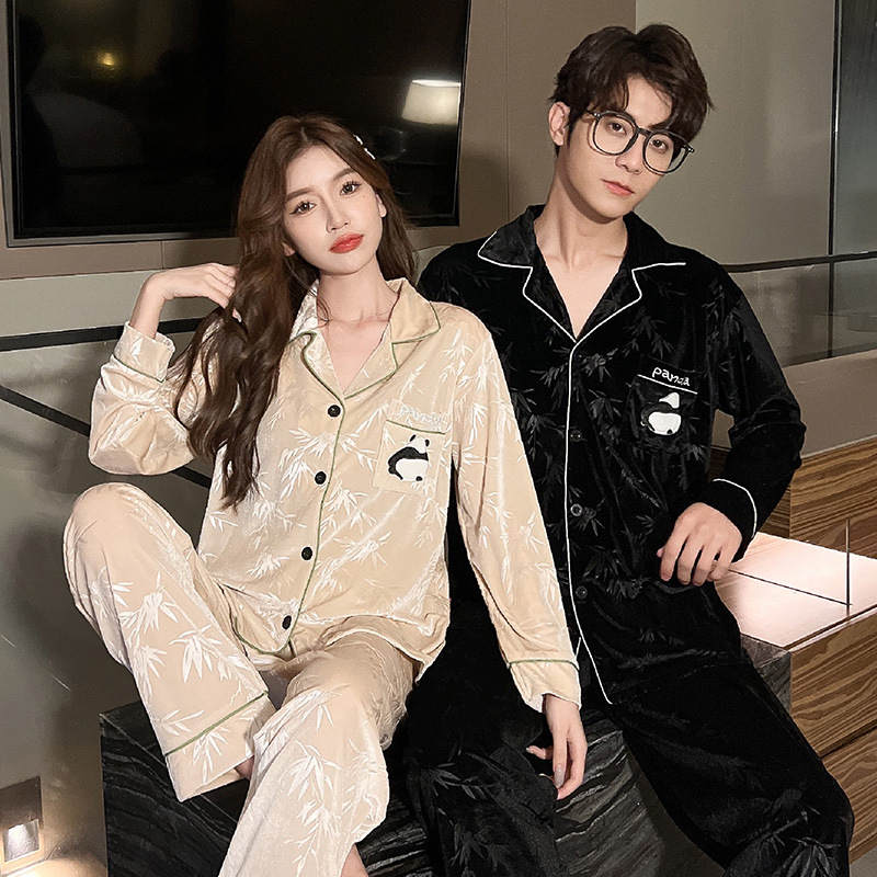 커플 잠옷 가을과 겨울 새로운 자카드 골든 벨벳 남자의 긴 소매 따뜻한 빛 럭셔리 캐주얼 여성의 가을 가정 의류