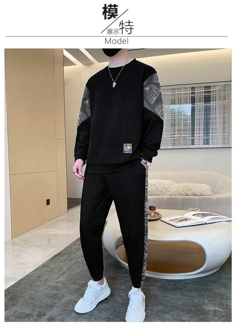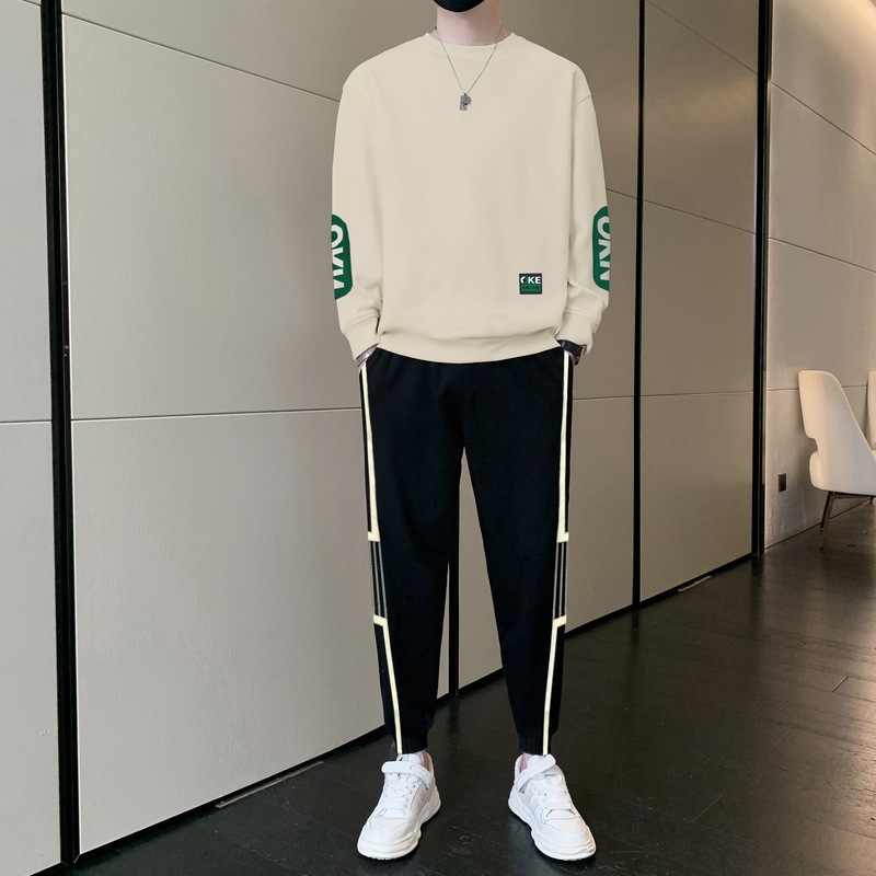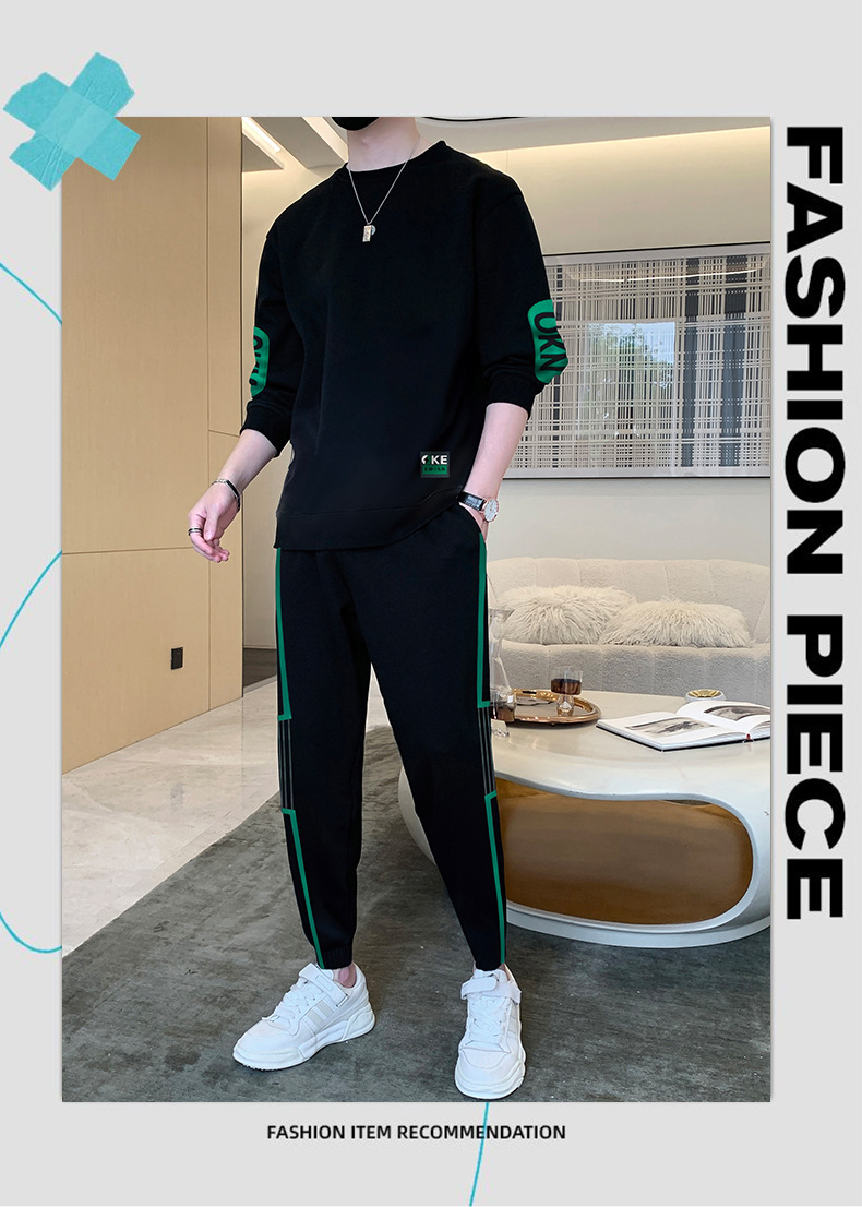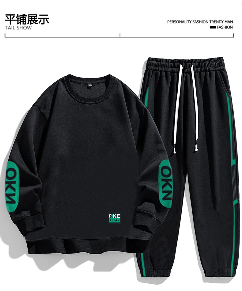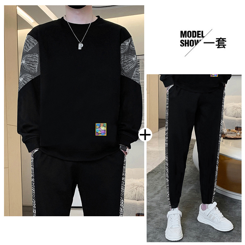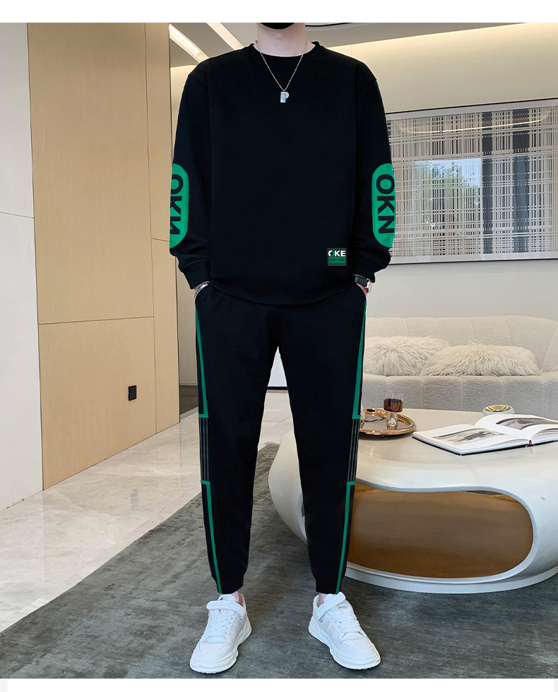 남성 캐주얼 스포츠 정장 봄, 가을 2024년 새로운 홍콩 스타일 라운드 넥 스웨트셔츠와 멋진 남성복