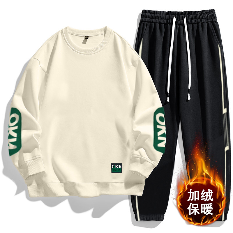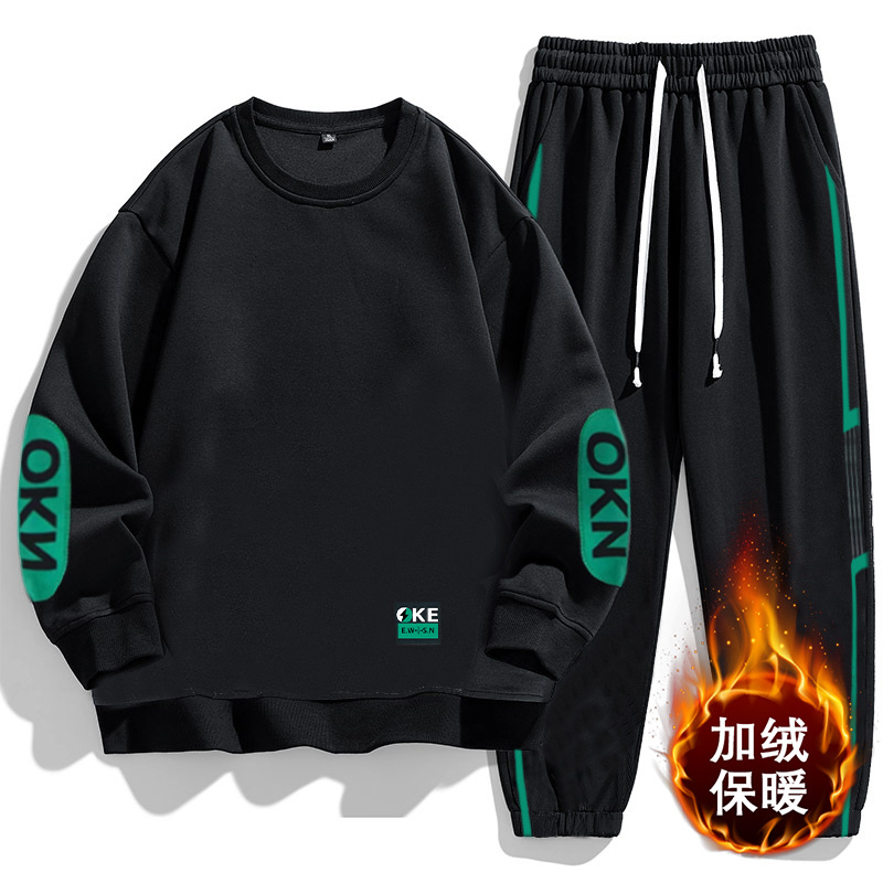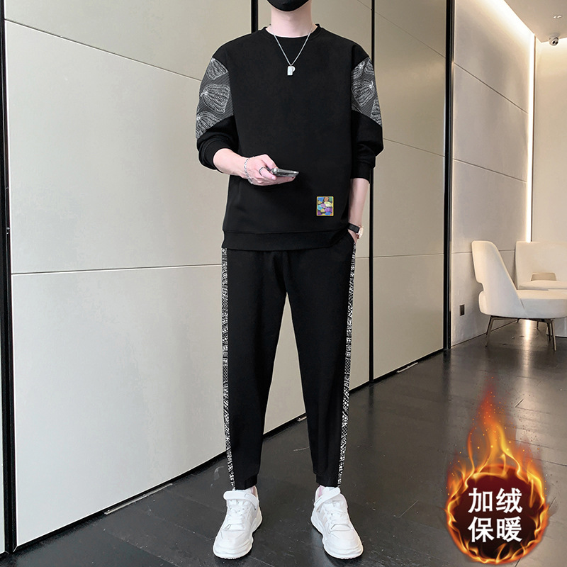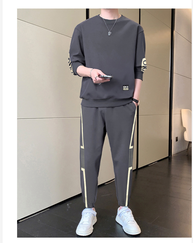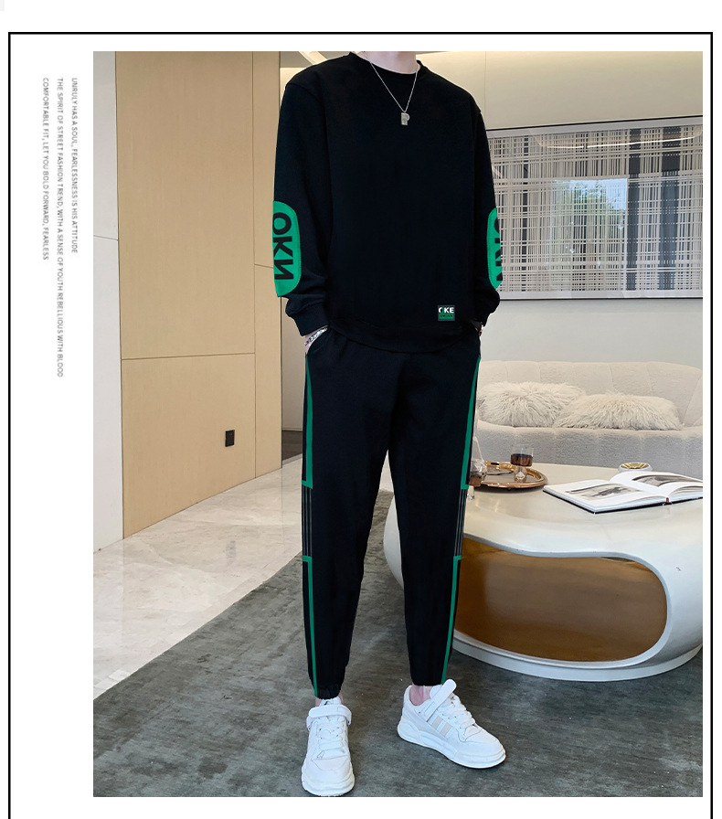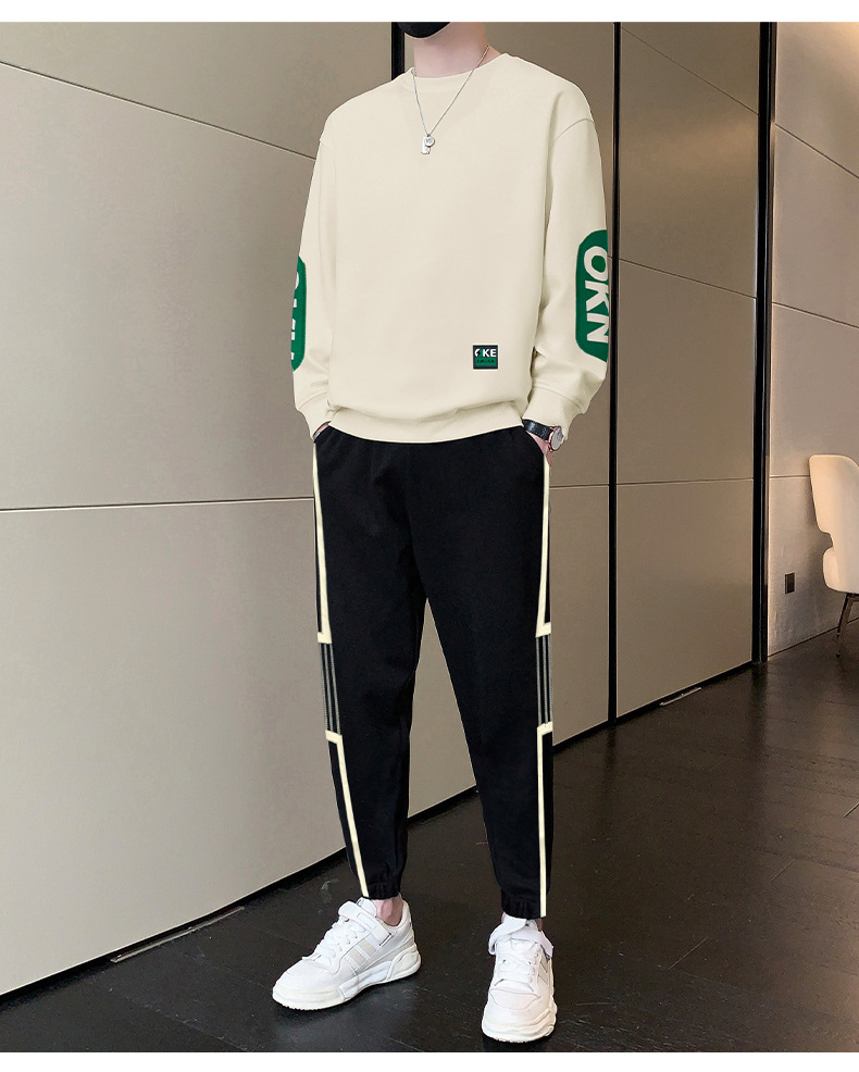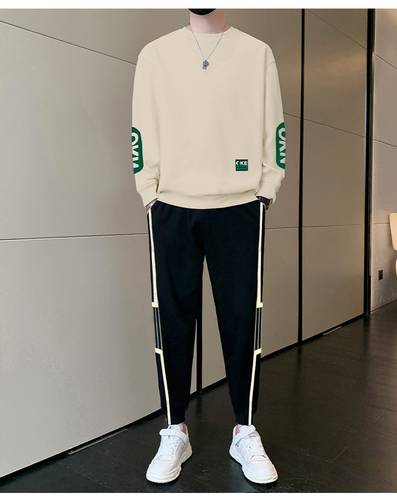 남성 캐주얼 스포츠 정장 봄, 가을 2024년 새로운 홍콩 스타일 라운드 넥 스웨트셔츠와 멋진 남성복
