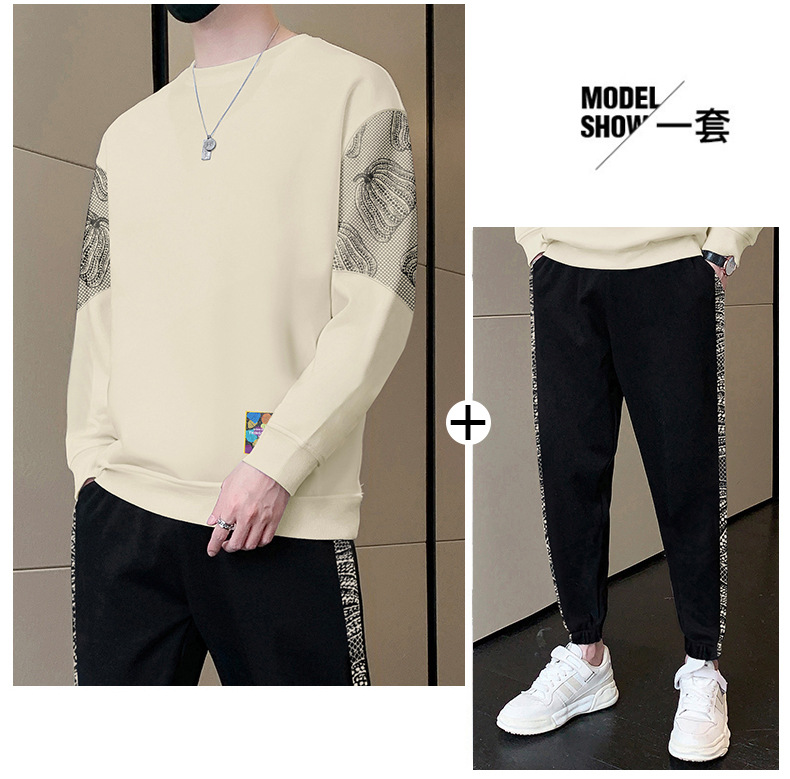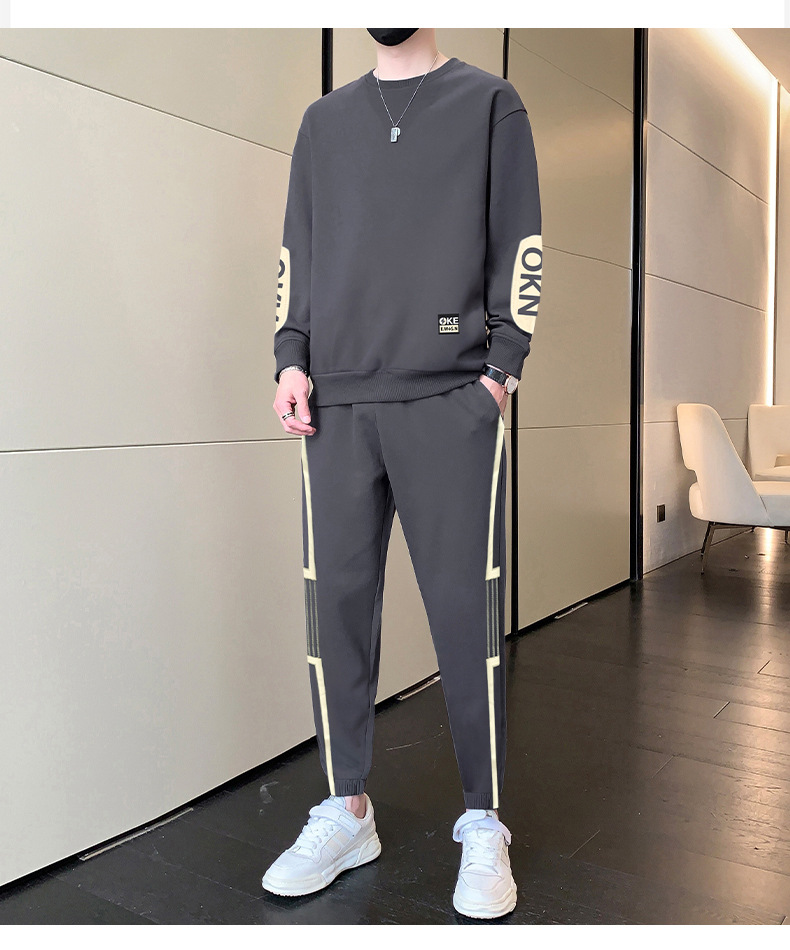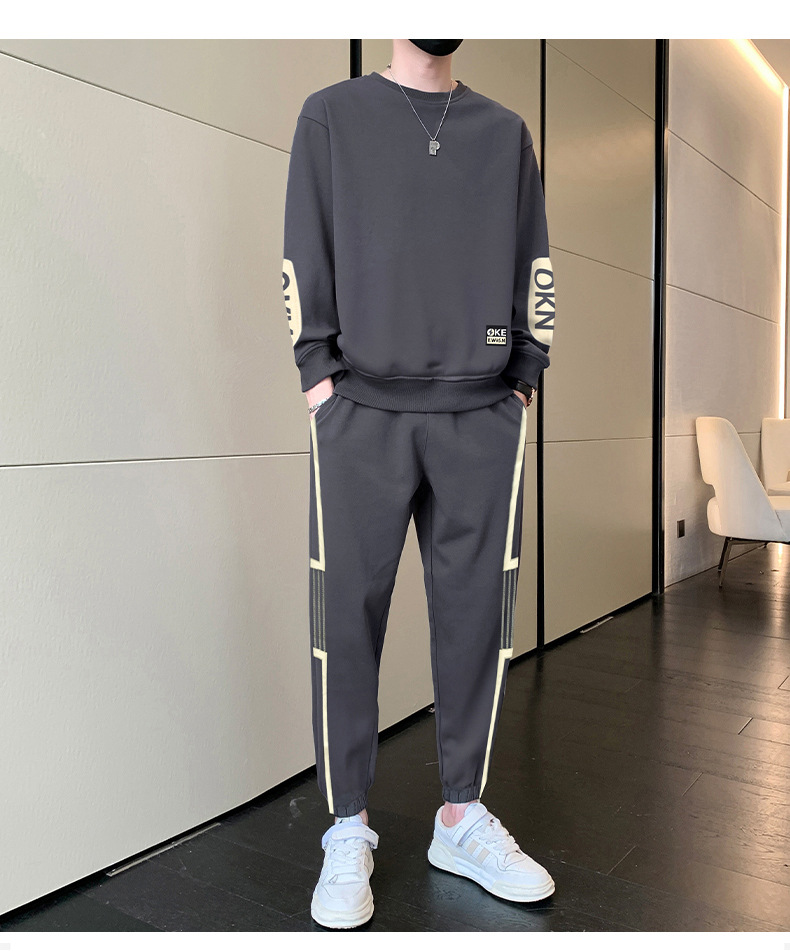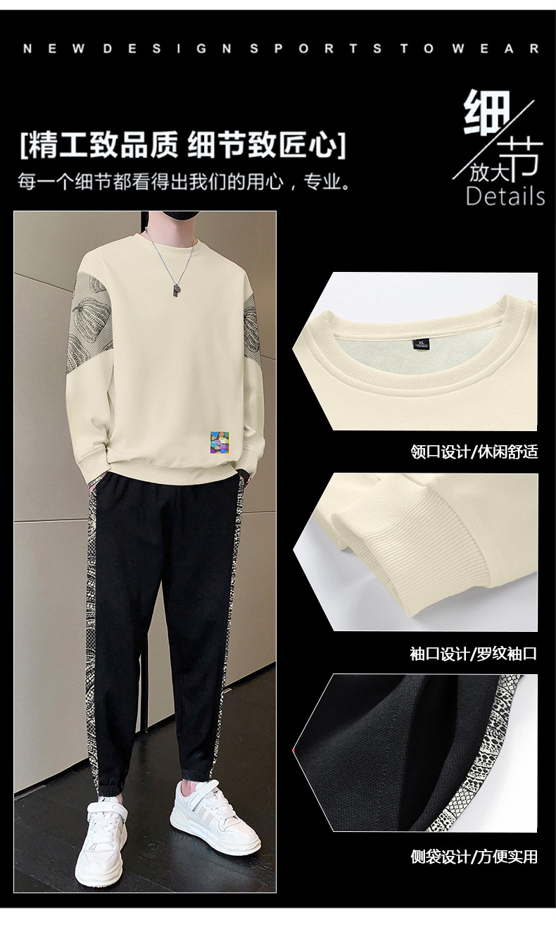 남성 캐주얼 스포츠 정장 봄, 가을 2024년 새로운 홍콩 스타일 라운드 넥 스웨트셔츠와 멋진 남성복스토어 가기