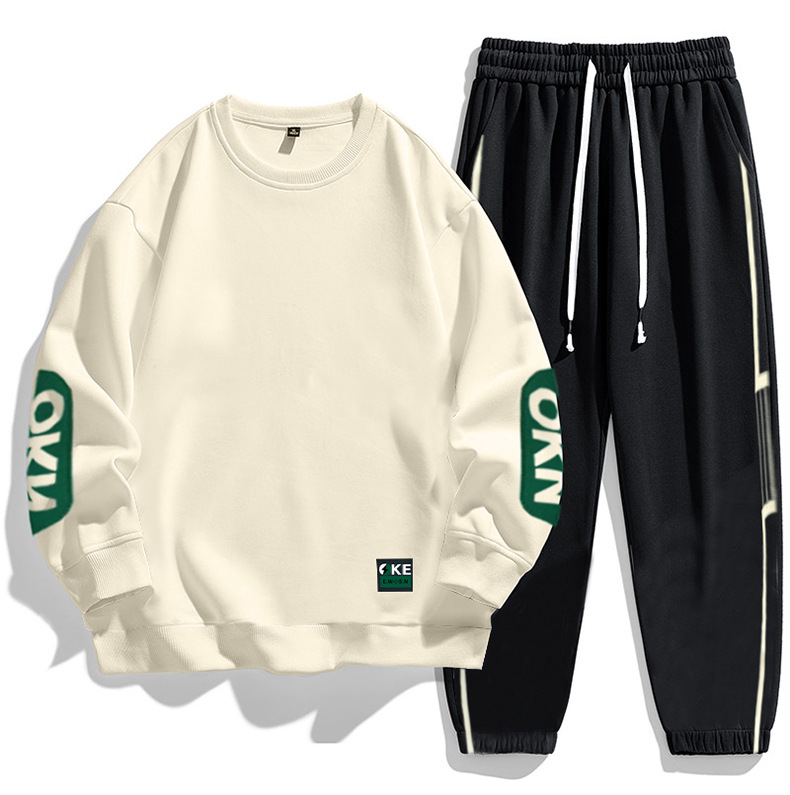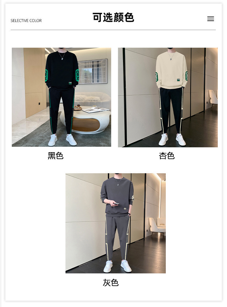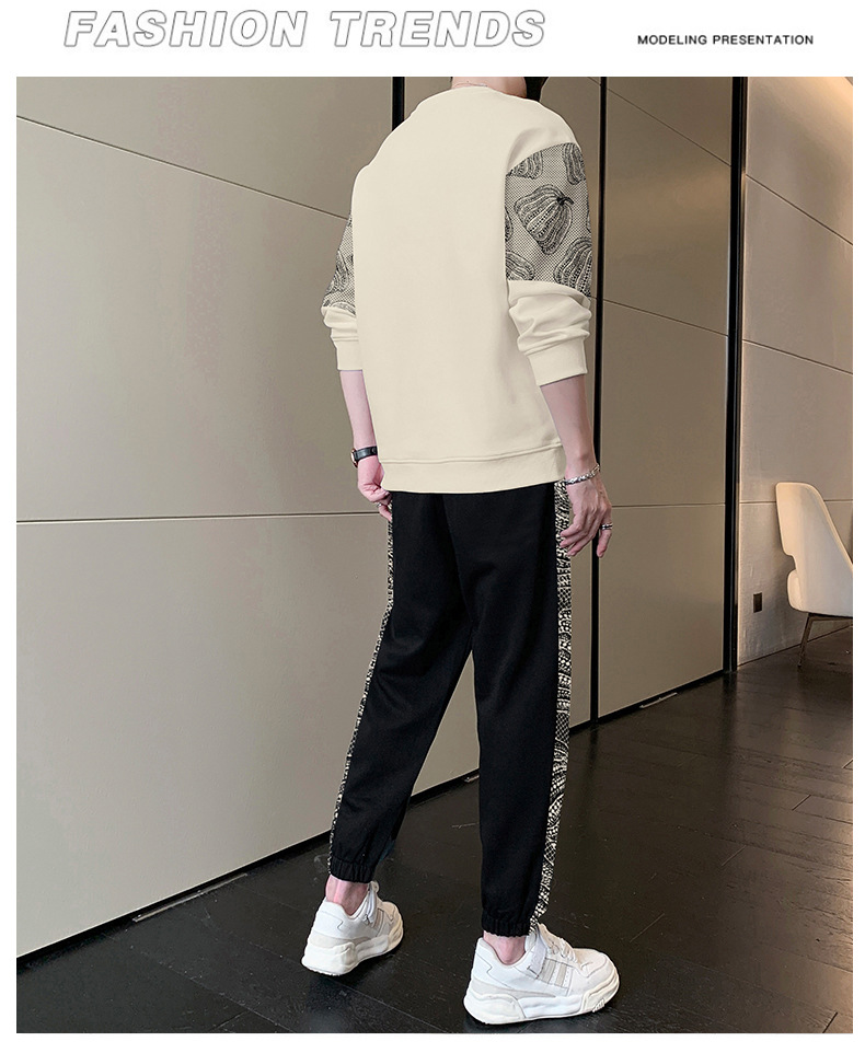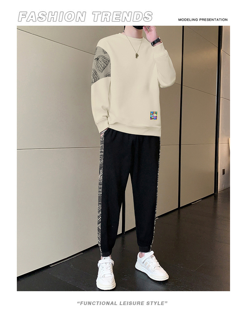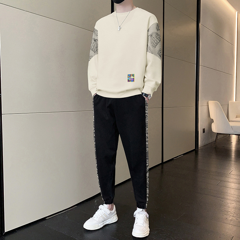 남성 캐주얼 스포츠 정장 봄, 가을 2024년 새로운 홍콩 스타일 라운드 넥 스웨트셔츠와 멋진 남성복스토어 가기