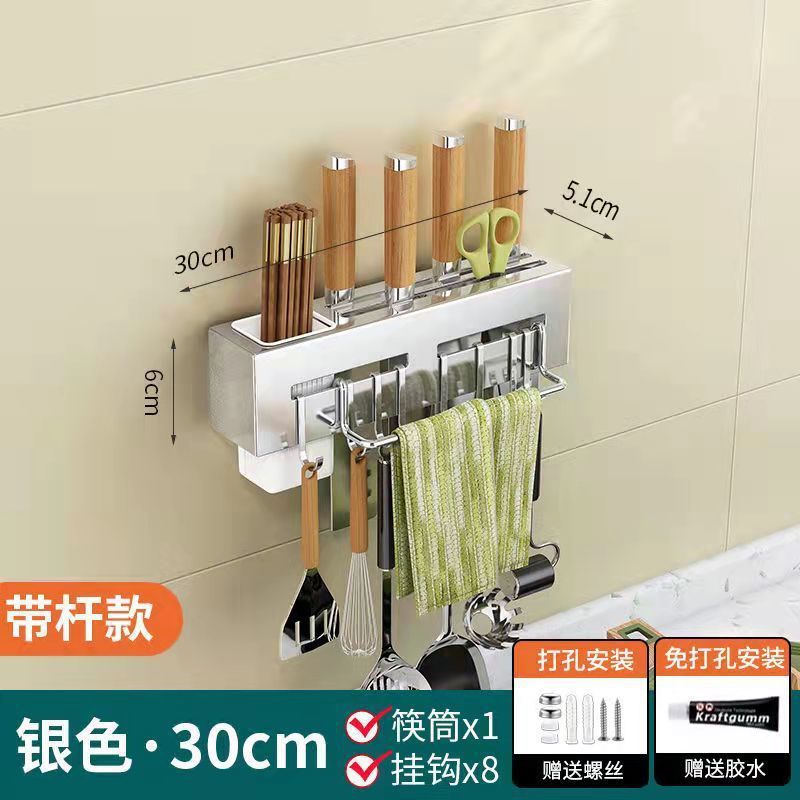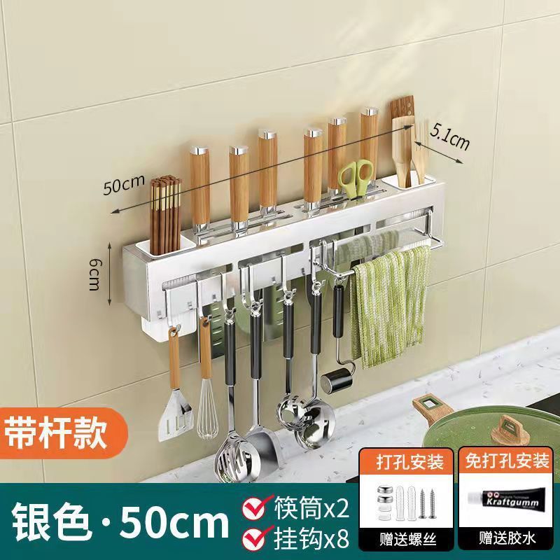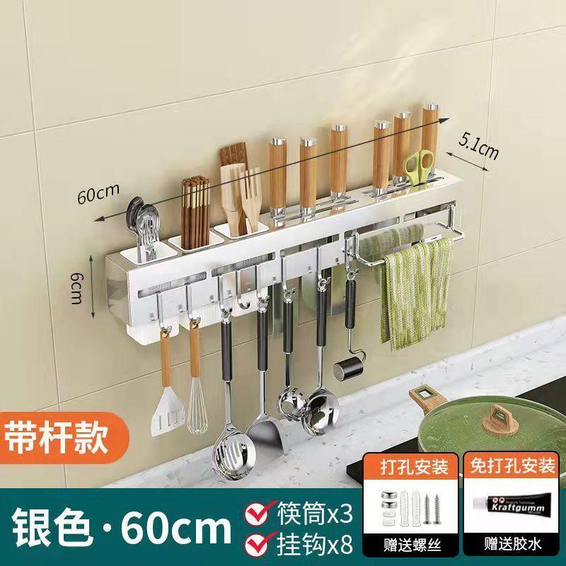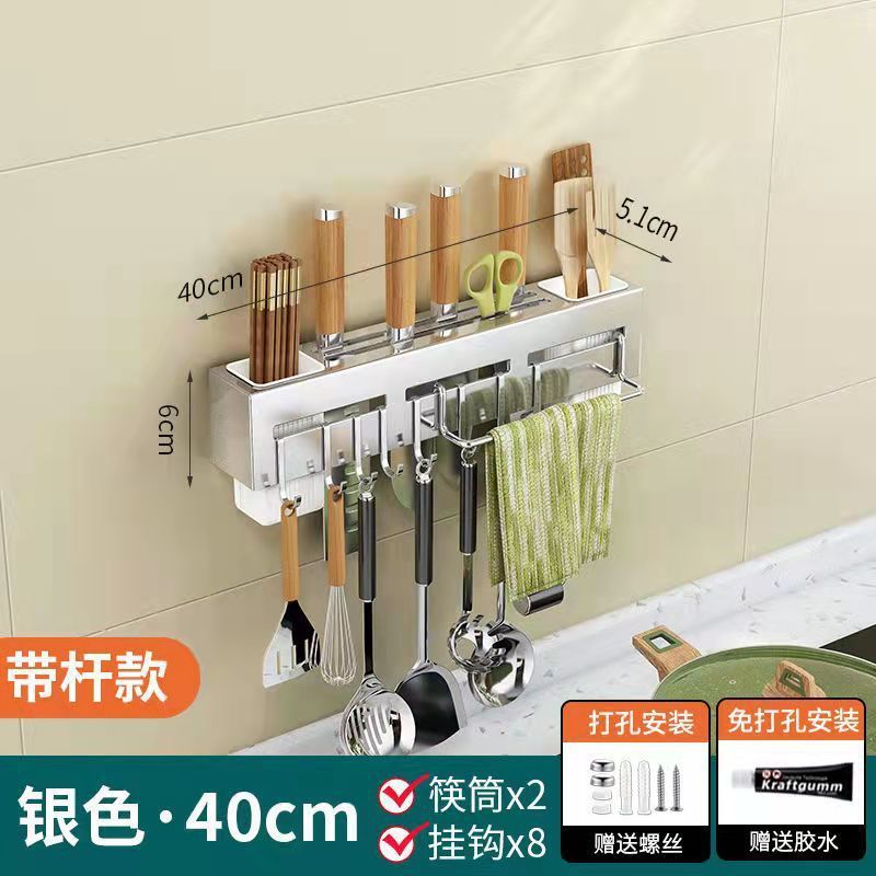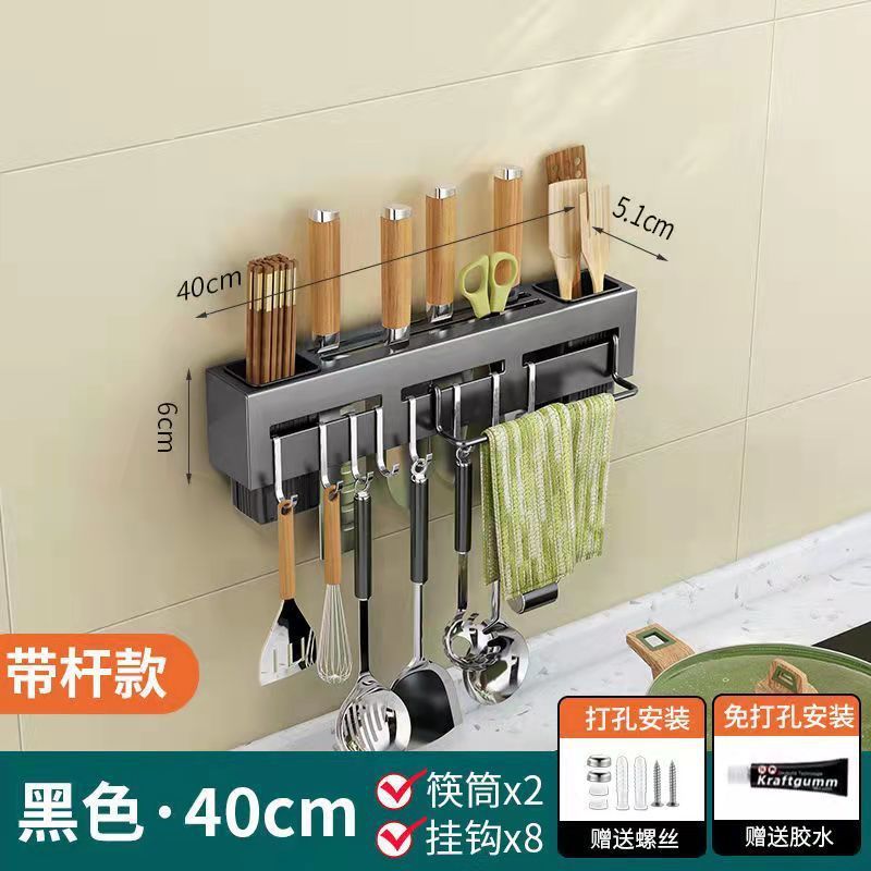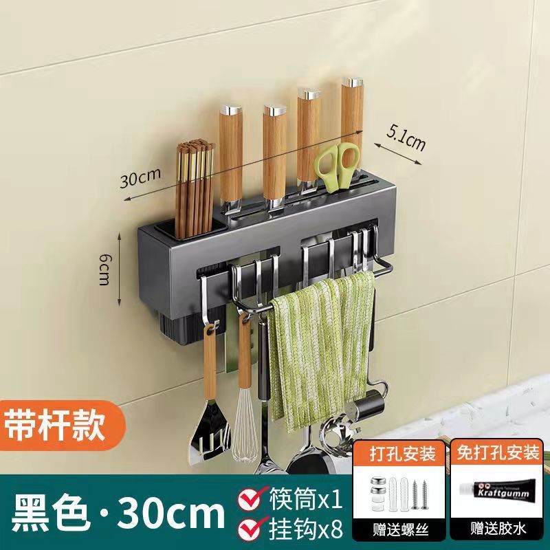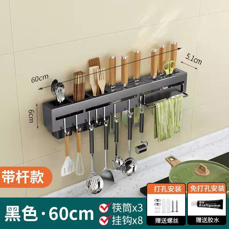 주방 수납 랙 나이프 홀더 벽걸이 형 주방 용품 다기능 나이프 젓가락 홀더 통합 스토리지 랙 펀치 프리