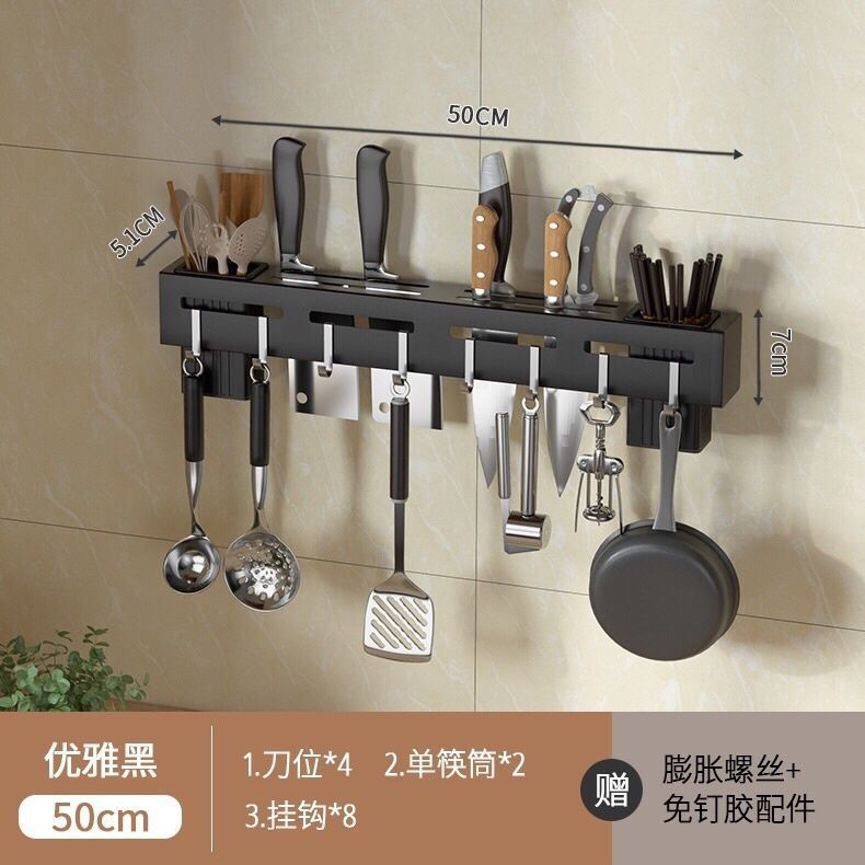 • [우아한 블랙] 수건 막대로 50cm 두껍게 (이중 젓가락 홀더 + 8 후크)