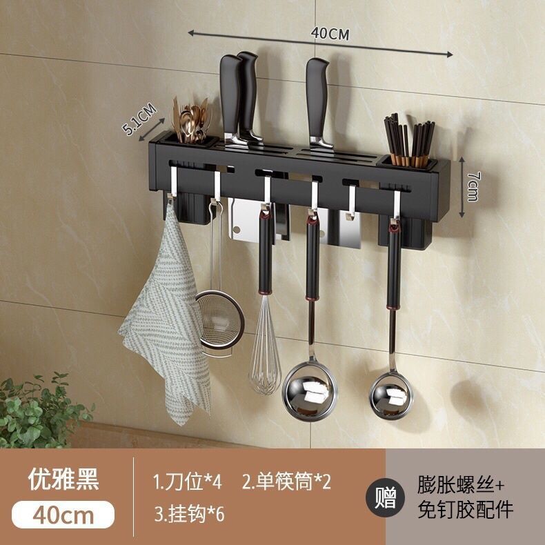 • [우아한 블랙] 두꺼운 40cm (이중 젓가락 홀더 + 6 후크)