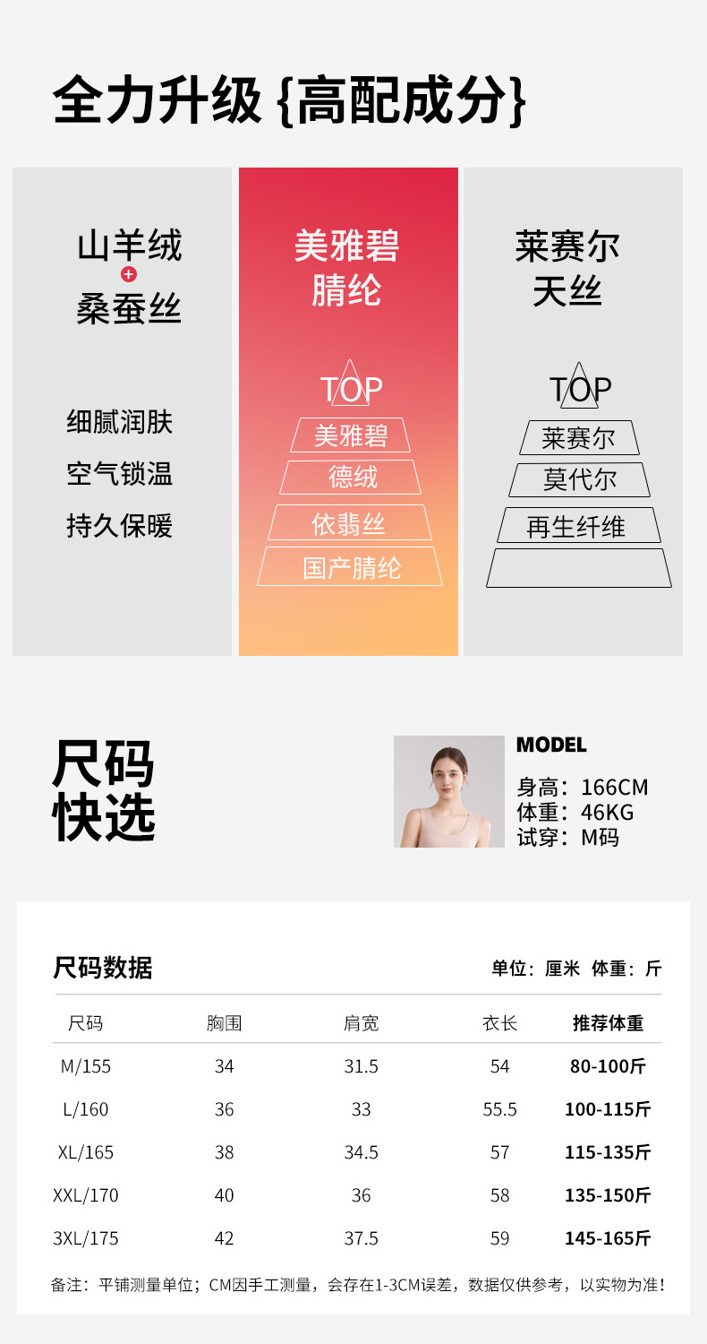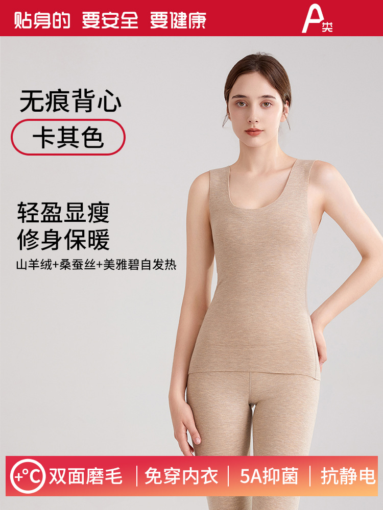 가을 겨울 독일산 보온 조끼 여성용 실크 캐시미어 발열 조끼 플러스 벨벳 두꺼운 항균 보온 민소매 상의 남성용