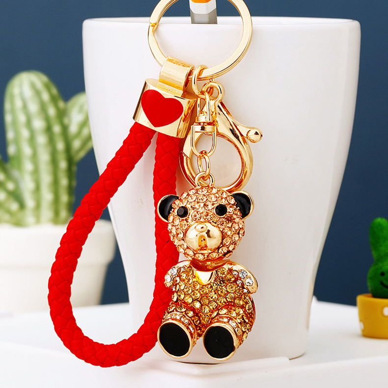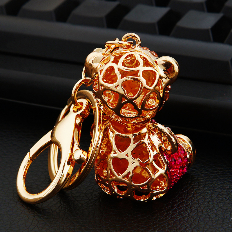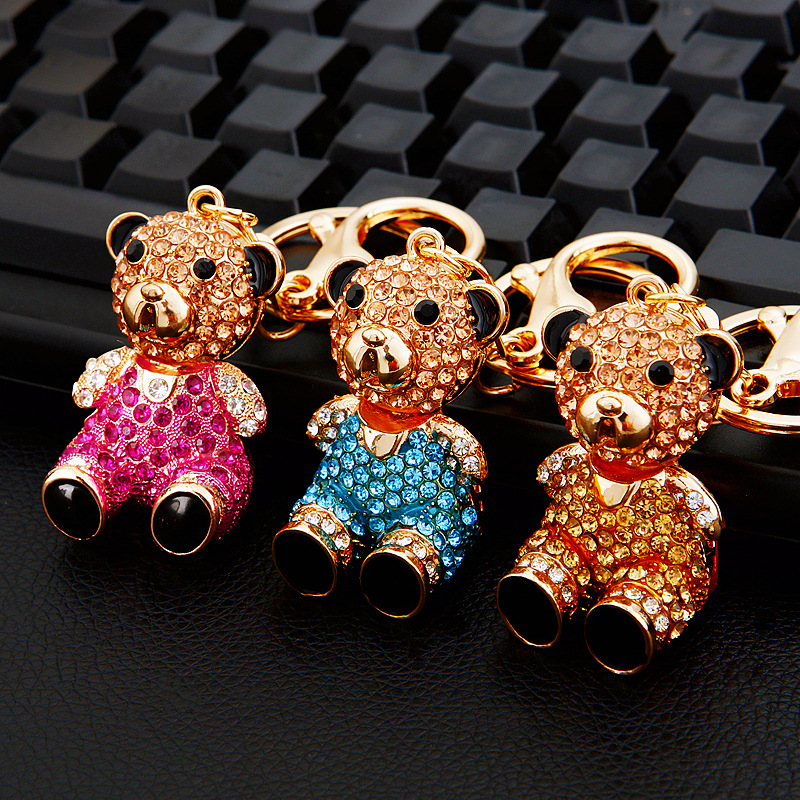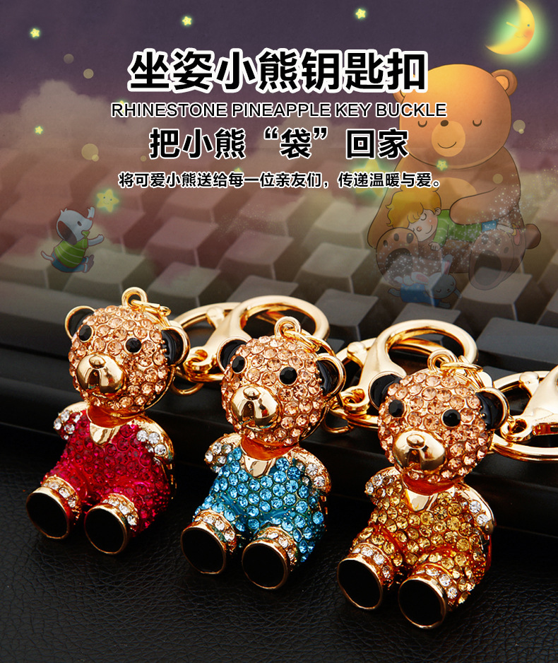 다이아몬드 곰 자동차 키 펜던트 여자의 귀여운 절묘한 선물 열쇠 고리 여자의 가방 펜던트 열쇠 고리 반지 도매