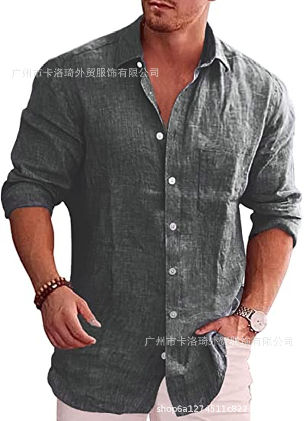 2022 아마존 이베이 대외 무역 남자의 느슨한 플러스 사이즈 단색 셔츠 린넨 옷깃 긴 소매 캐주얼 셔츠 남성용스토어 가기