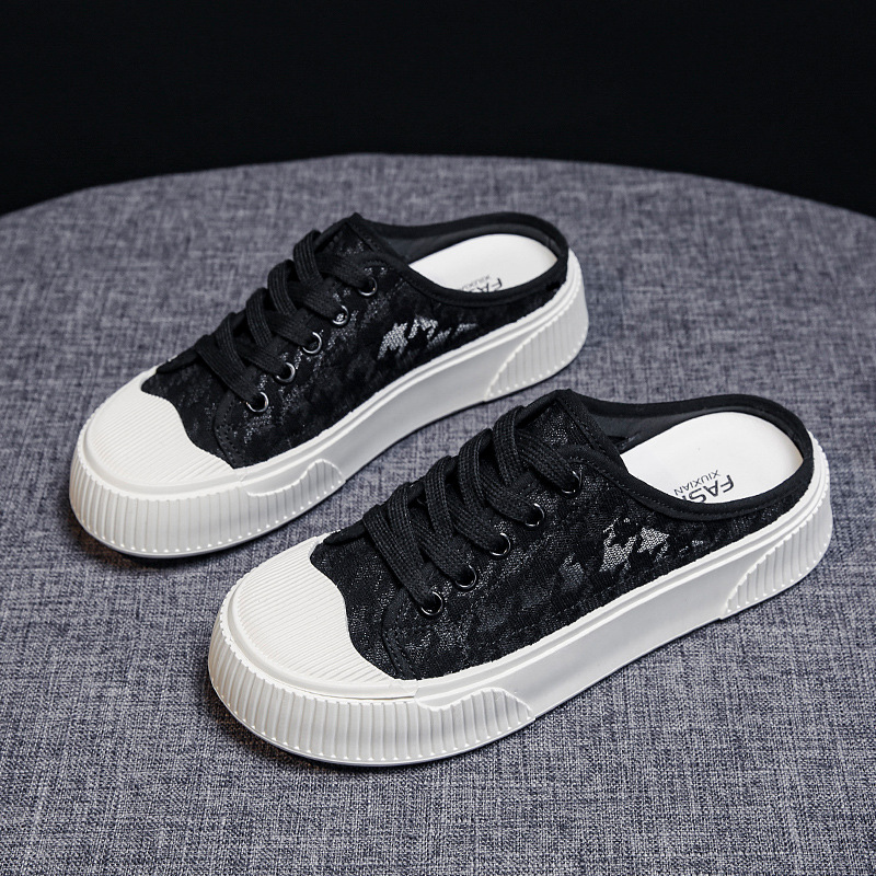 Baotou 하프 슬리퍼 여성 여름 겉옷 2025 새로운 스타일 힐리스 메쉬 신발 여성 통기성 메쉬 게으른 샌들