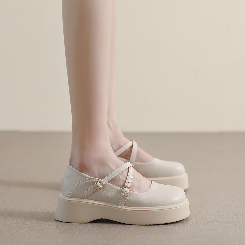 여성용 프렌치 메리 제인 작은 가죽 신발 두꺼운 밑창 대학 스타일 jk 싱글 슈즈 라운드 발가락 영국 로퍼 대형 여성 신발 4143