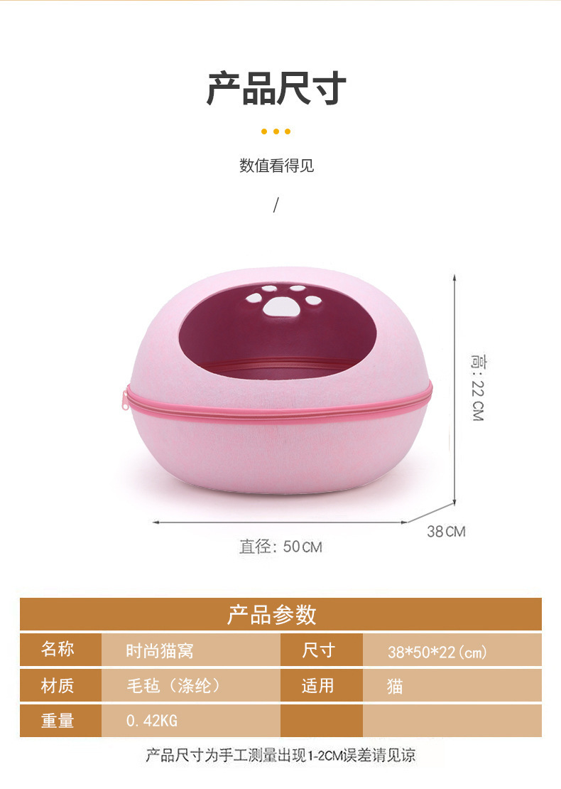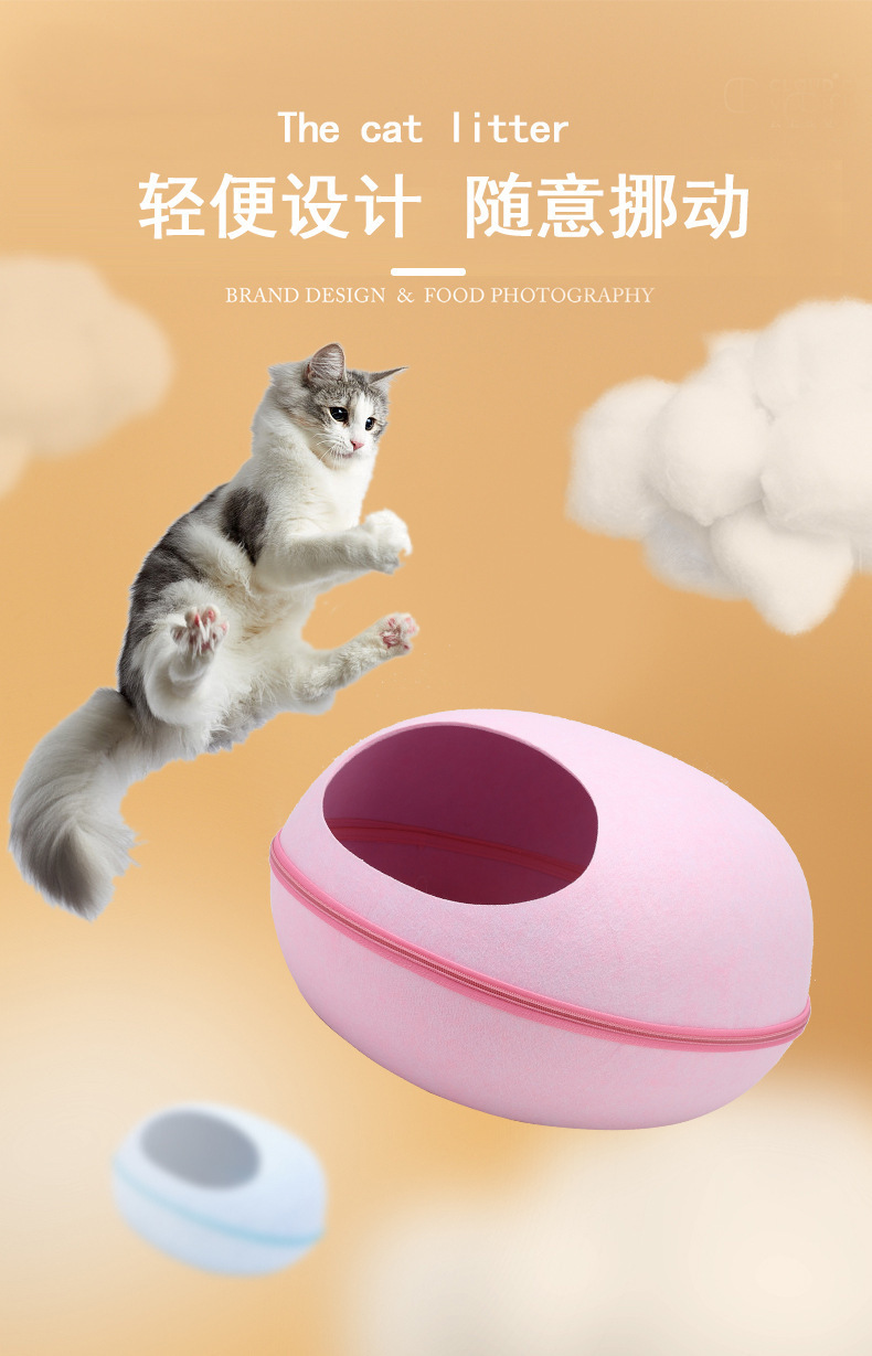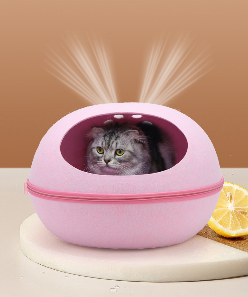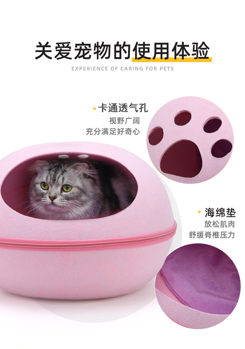 펠트 고양이 둥지 달걀 껍질 큰 공간 반 폐쇄 탈착식 및 빨 수있는 고양이 침대 통기성 경량 고양이 둥지 애완 동물 둥지 도매