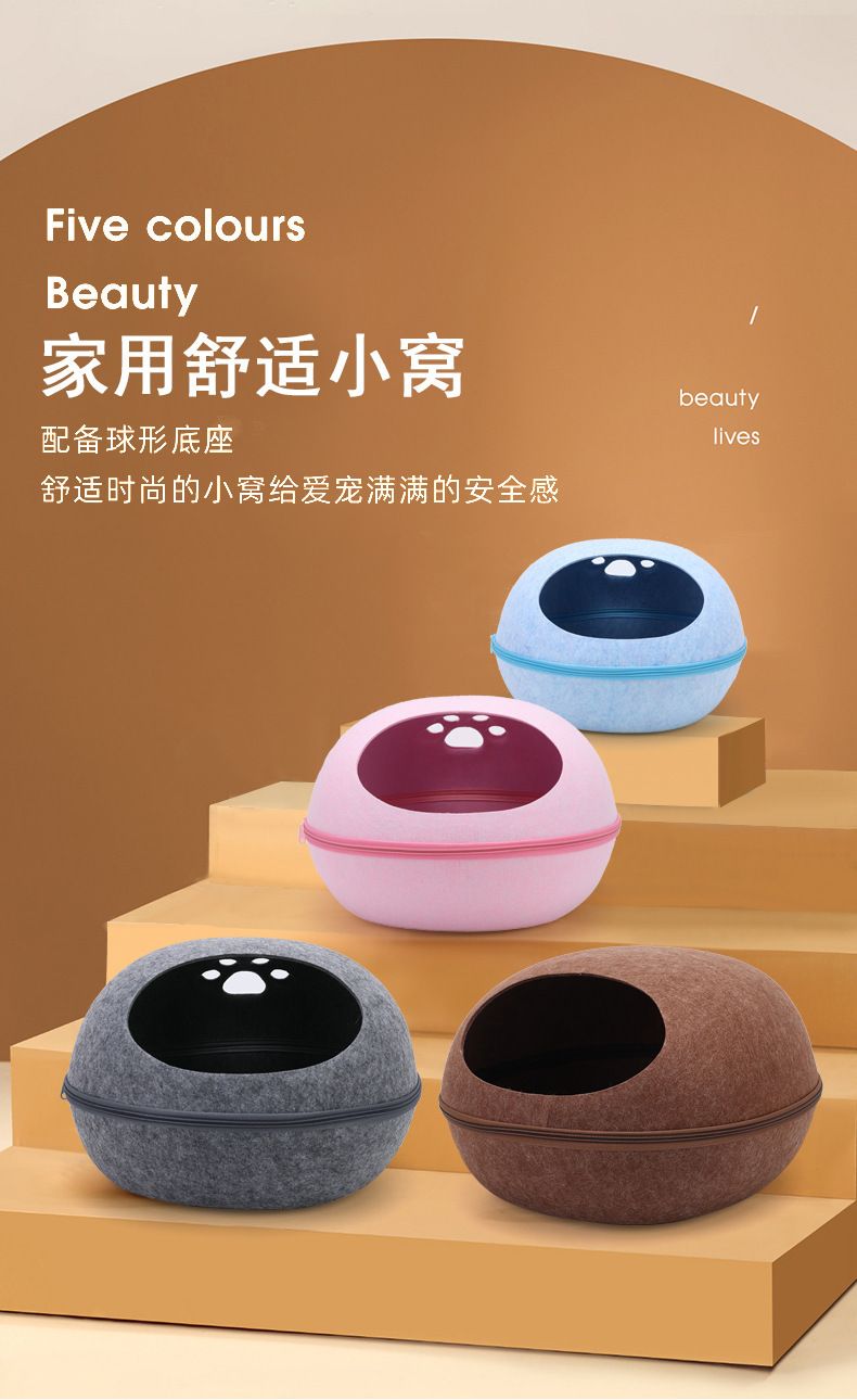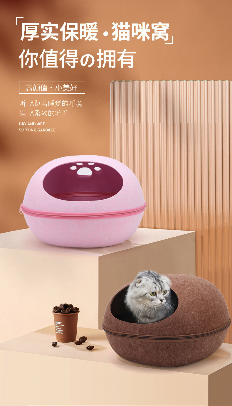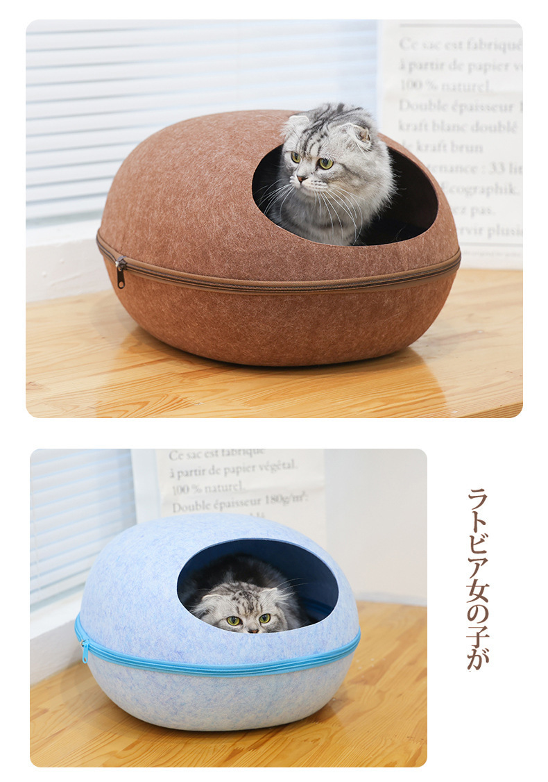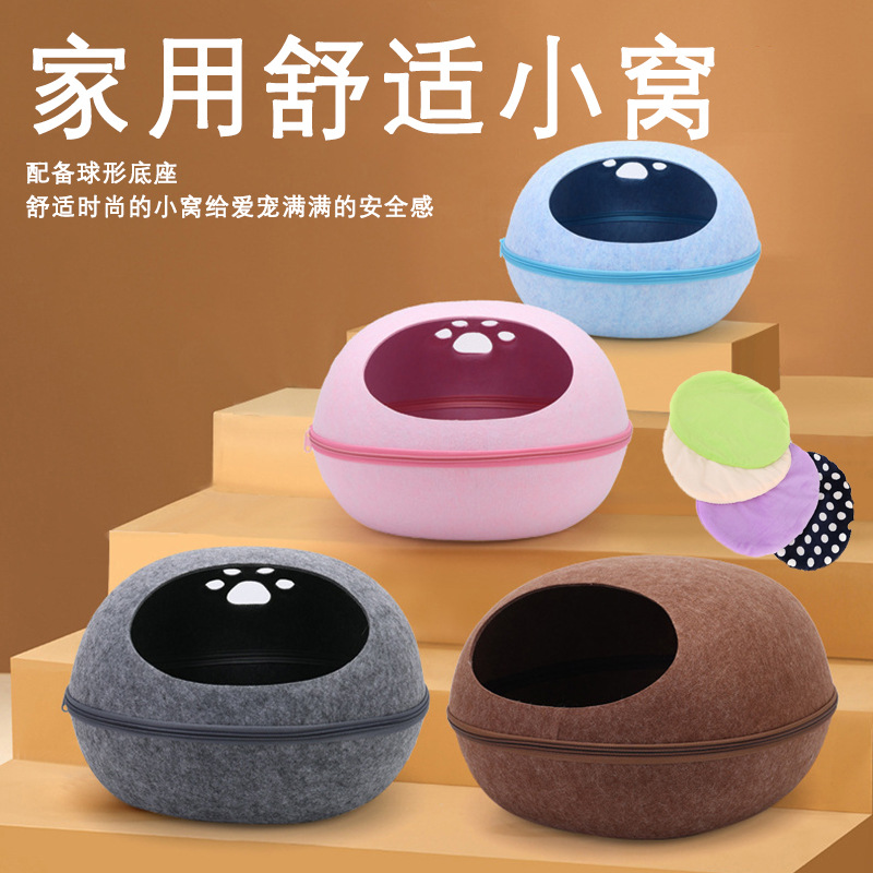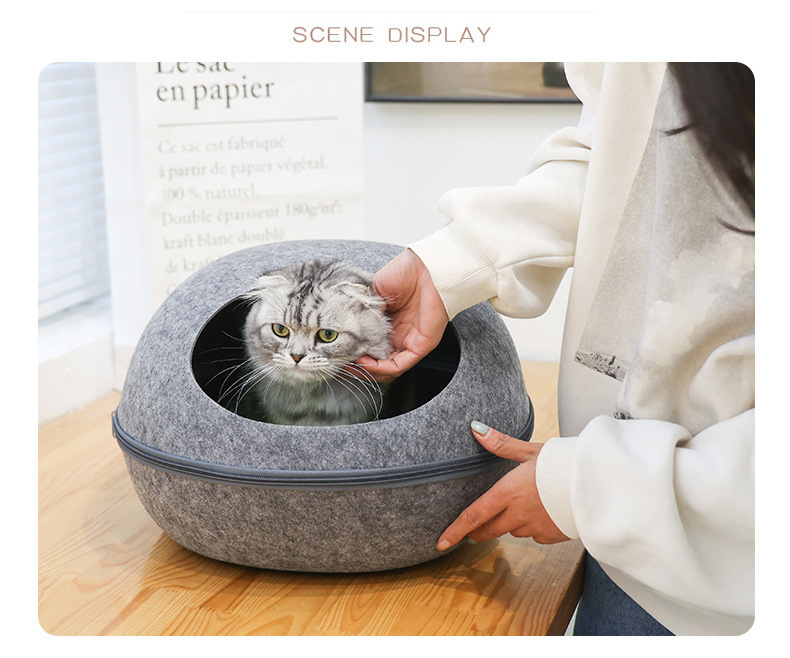 펠트 고양이 둥지 달걀 껍질 큰 공간 반 폐쇄 탈착식 및 빨 수있는 고양이 침대 통기성 경량 고양이 둥지 애완 동물 둥지 도매스토어 가기