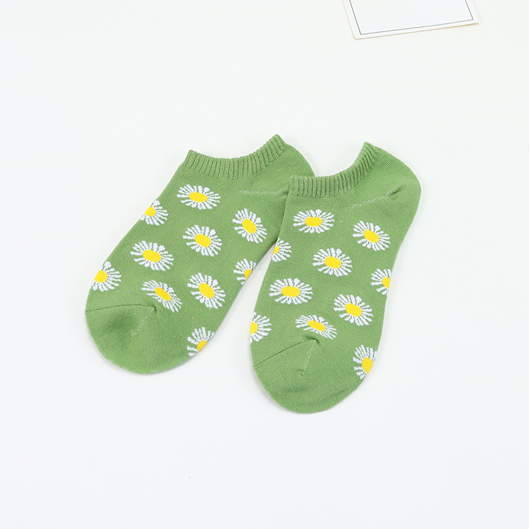 보트 양말 여성용 여름 얕은 입 양말 녹색 수평 물방울 무늬 데이지 여성 양말 면 달콤한 스포츠 양말 도매스토어 가기