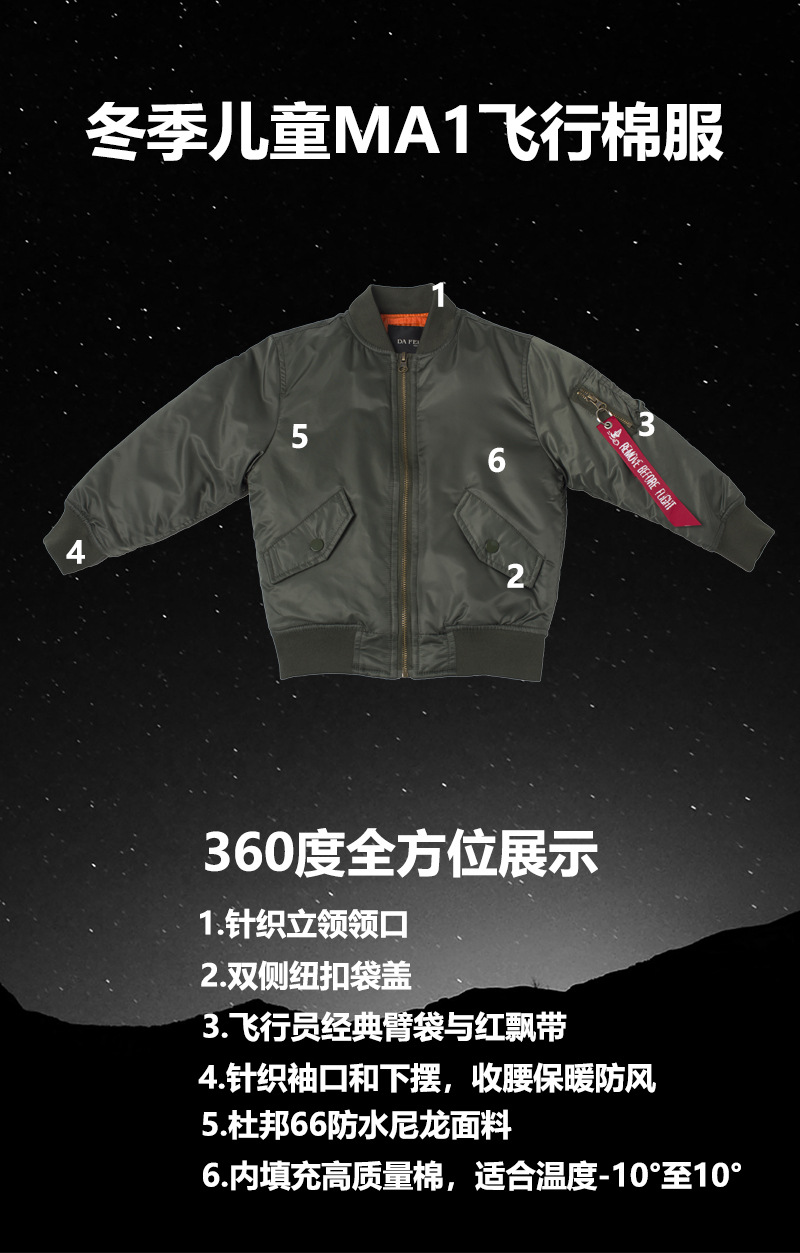 미국 아동 코트 가을과 겨울 폭격기 재킷 MA-1 플러스 면화 소년 소녀 소형, 중형 및 대형 아동복 두꺼운 재킷
