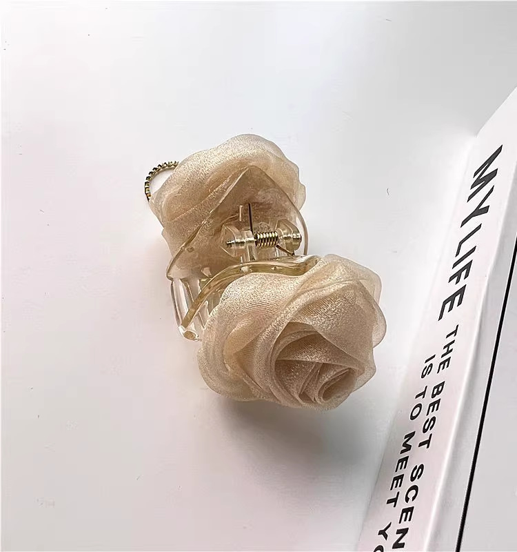 로즈 플라워 그랩 클립 스몰 사이즈 우아한 백 헤드 헤어 클립 볼 헤어 클립 하이 포니 테일 클립 상어 클립