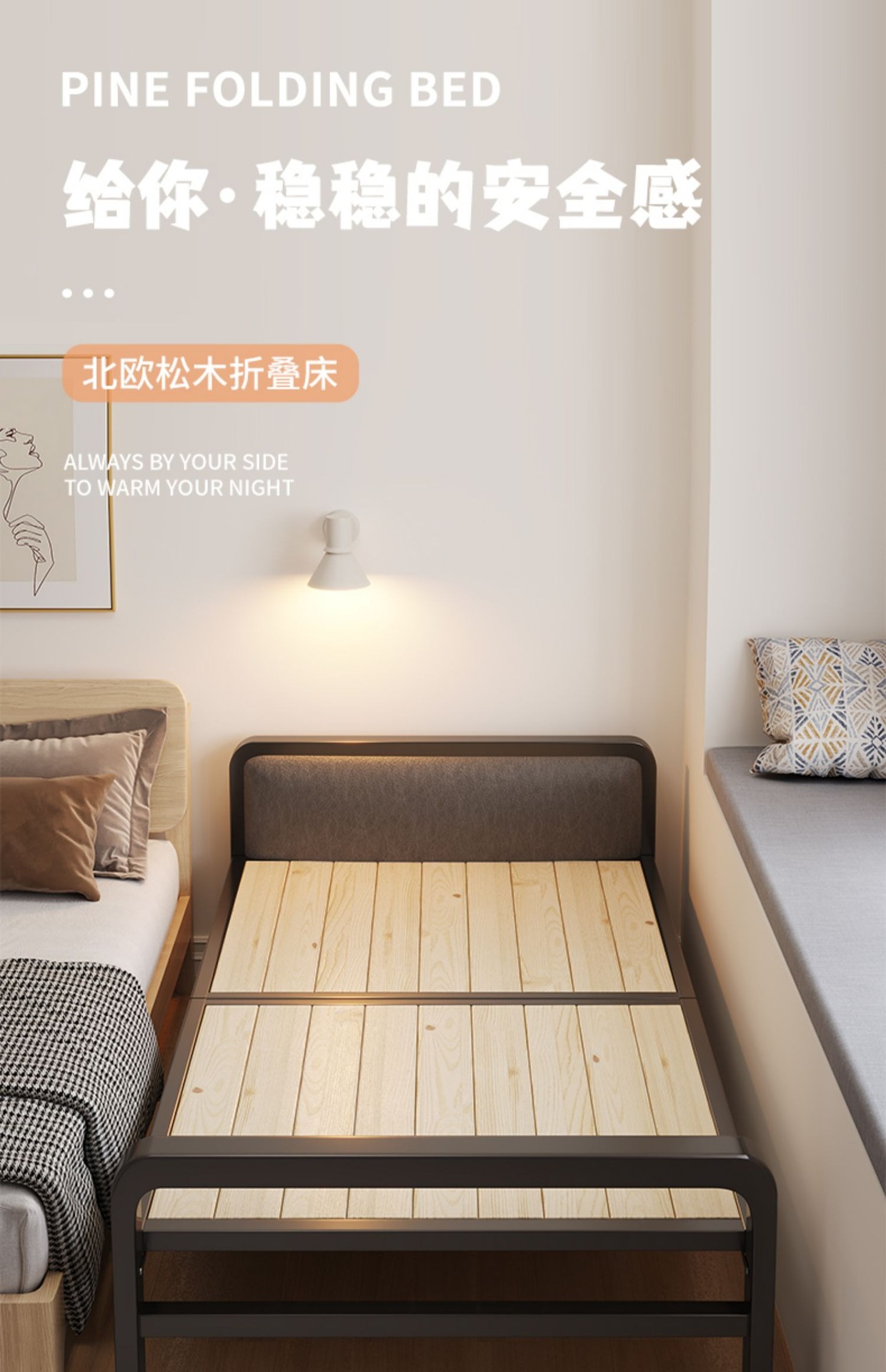 접이식 침대 단단한 나무 침대 보드 가정용 간단한 이중 낮잠 동반 침대 금속 강화 싱글 침대 스틸 프레임 강철 나무 침대