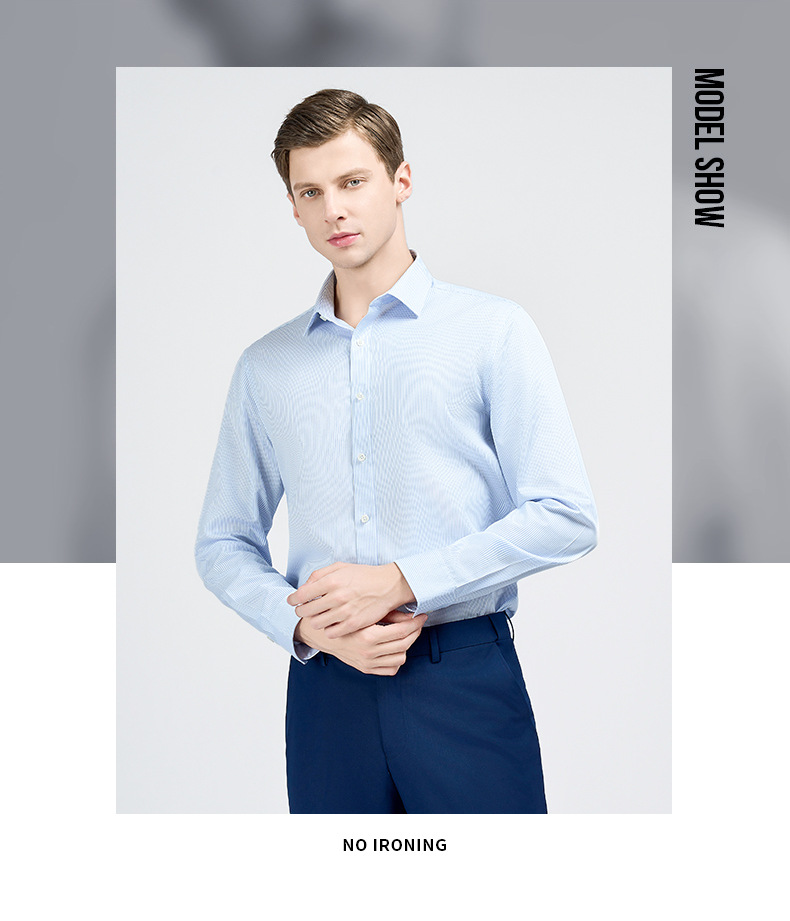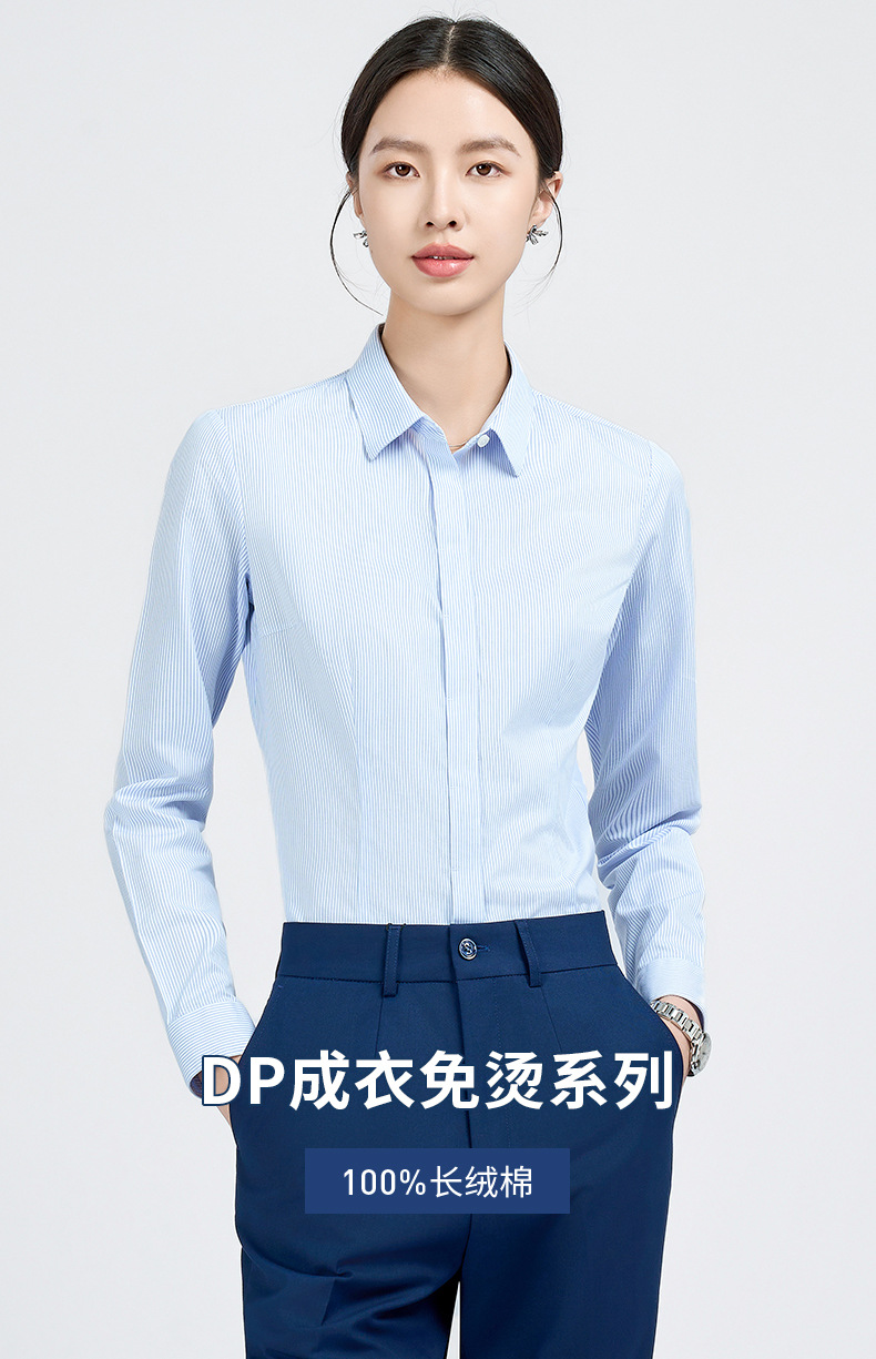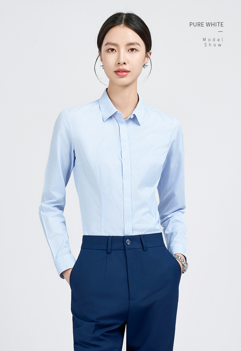 여성용 셔츠 여성용 면 긴 소매 정부 은행 비즈니스 착용 블루 스트라이프 DP 기성품 의류 비 다림질 셔츠 100s