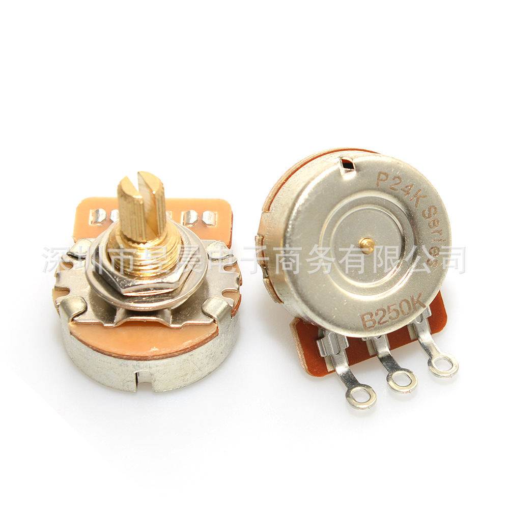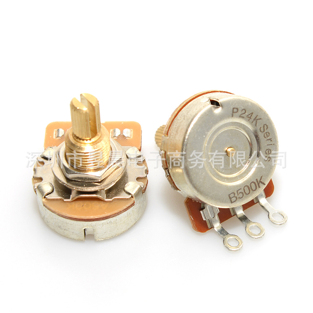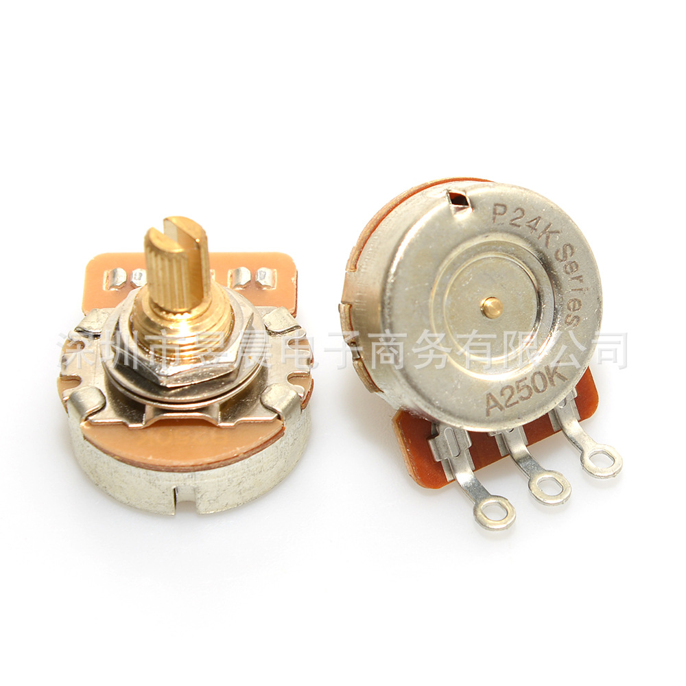 产品特点:电位器分A,B型,A型(常用于单拾音器音色控制),B型(常用于双拾音器音量控制),250K常用于单拾音器,500K常用于双拾音器