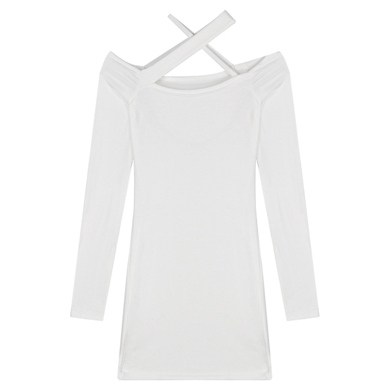 원피스 여자의 어깨 섹시 타이트 허리 슬림 핏 엉덩이 스커트 2022 여름 새로운 블랙 긴 소매 스커트